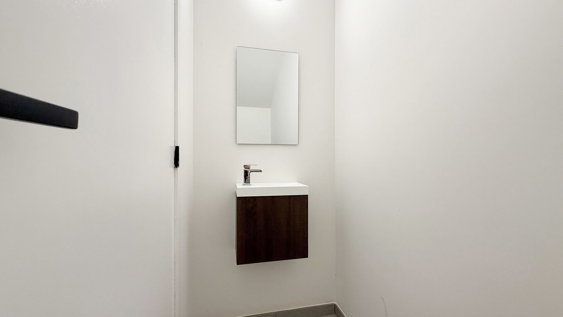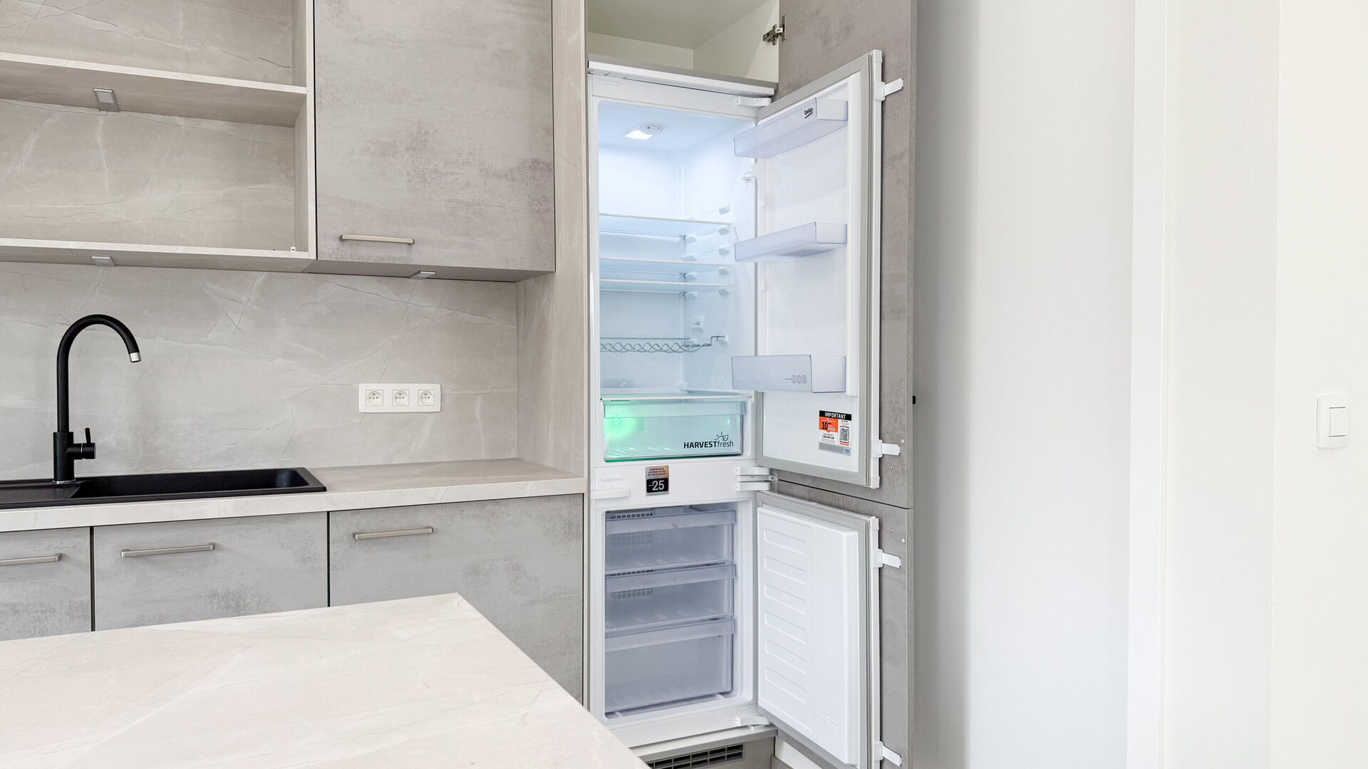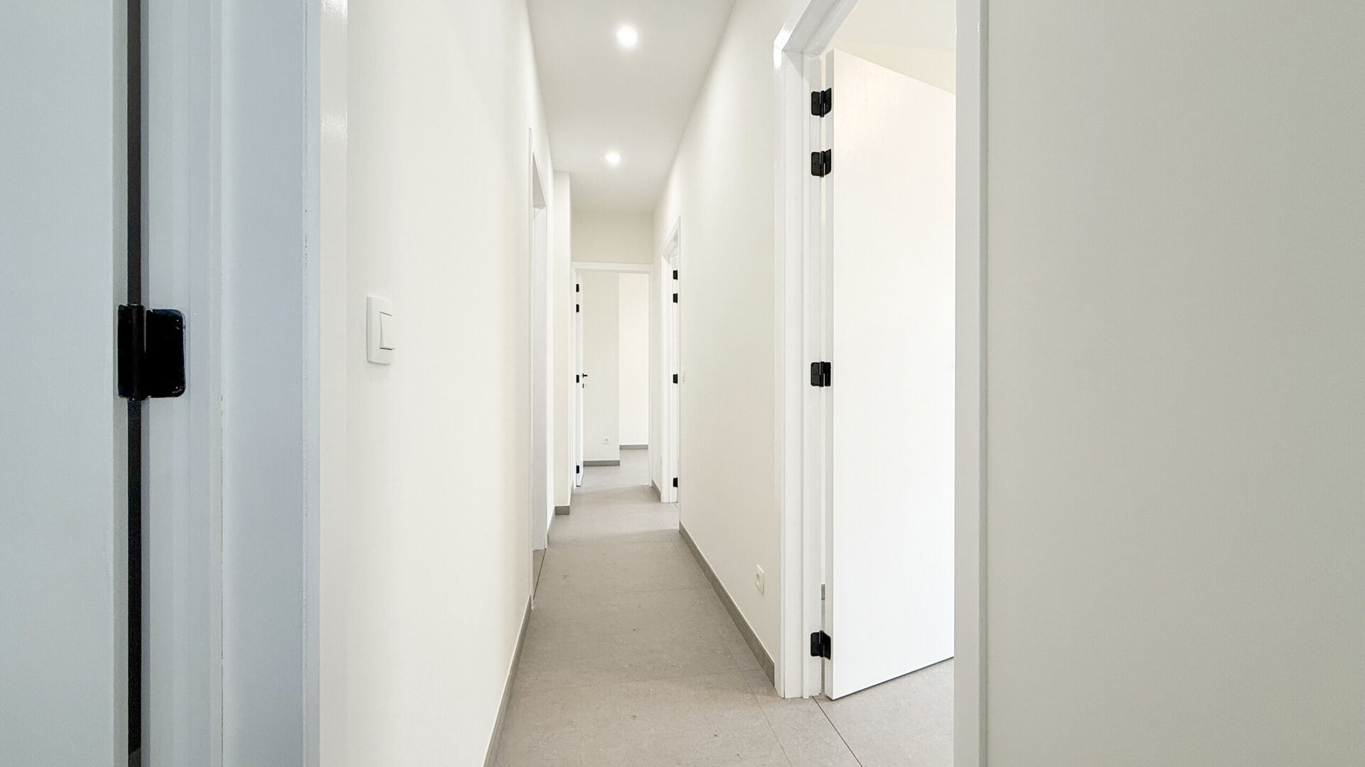Binnenin geniet je van een lichtrijk en fris interieur, dankzij de grote raampartijen die overvloedig daglicht binnenbrengen. De woning straalt een strakke, moderne stijl uit met mooie, wit geschilderde binnendeuren en een tijdloze afwerking.