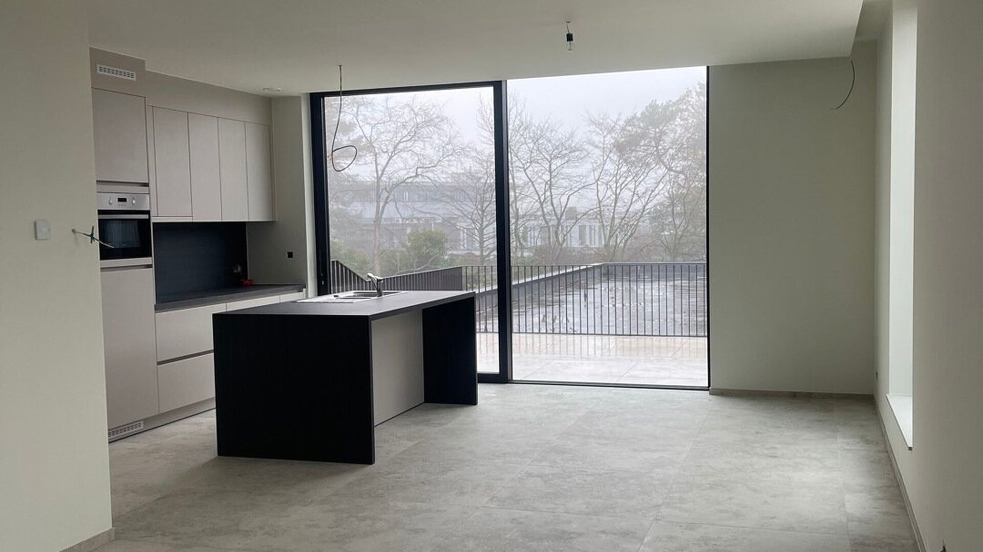Bij het binnenkomen verwelkomt de inkomhal je met een apart gastentoilet. De aangename leefruimte met open keuken geniet van royale lichtinval door de grote raampartijen, wat zorgt voor een warm en ruimtelijk gevoel. De keuken is volledig uitgerust met een koelkast met diepvriesvak, magnetron, vaatwasser en inductiekookplaat. Vanuit de leefruimte heb je toegang tot het ruime terras van maar liefst 46 m².