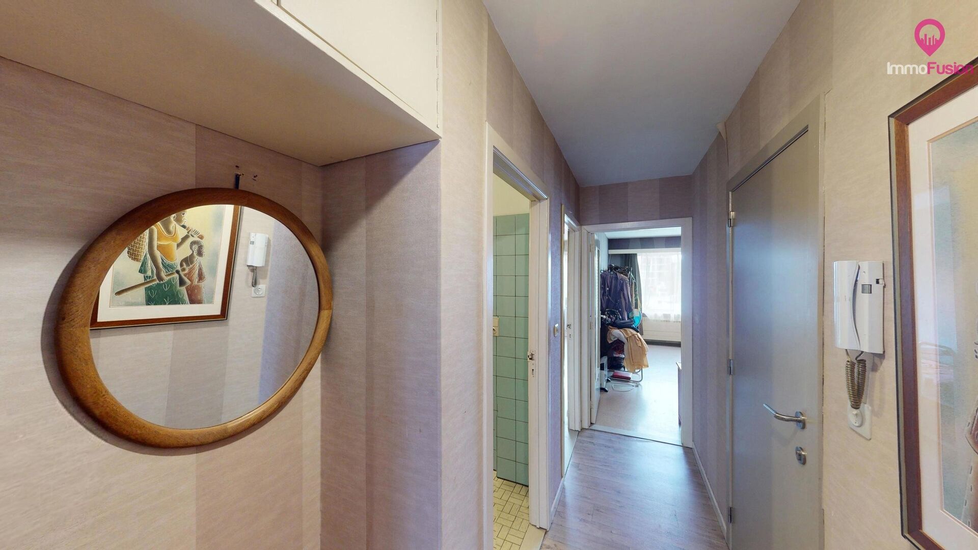 Bij het betreden van het appartement wordt u verwelkomd door een lange, uitnodigende inkomhal die leidt naar de gezellige woonkamer. De woonkamer baadt in natuurlijk licht dankzij de grote ramen, waardoor een aangename sfeer ontstaat voor ontspanning en sociale bijeenkomsten.