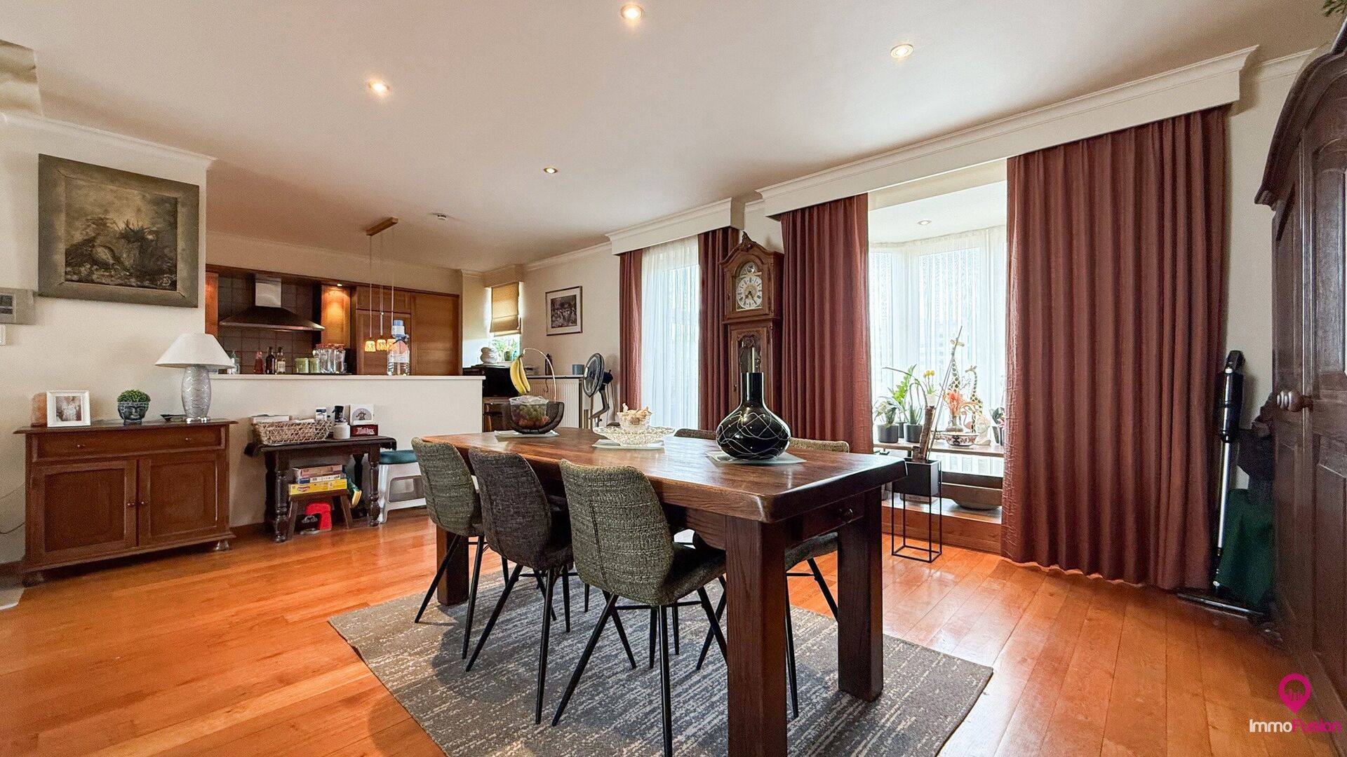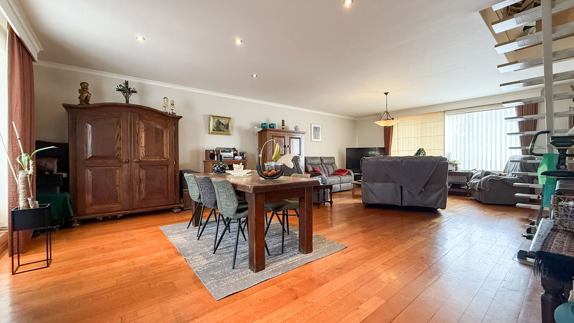 Bij binnenkomst treft u een verzorgde inkomhal met vestiairemogelijkheid en een elegant gastentoilet met handwasbakje. Vervolgens leidt de hal u naar de sfeervolle leefruimte met authentieke parketvloer – een stijlvolle, lichtrijke plek dankzij grote ramen aan voor- en achterzijde. De living straalt warmte en klasse uit, perfect voor gezellige familiemomenten of stijlvolle ontvangsten.
