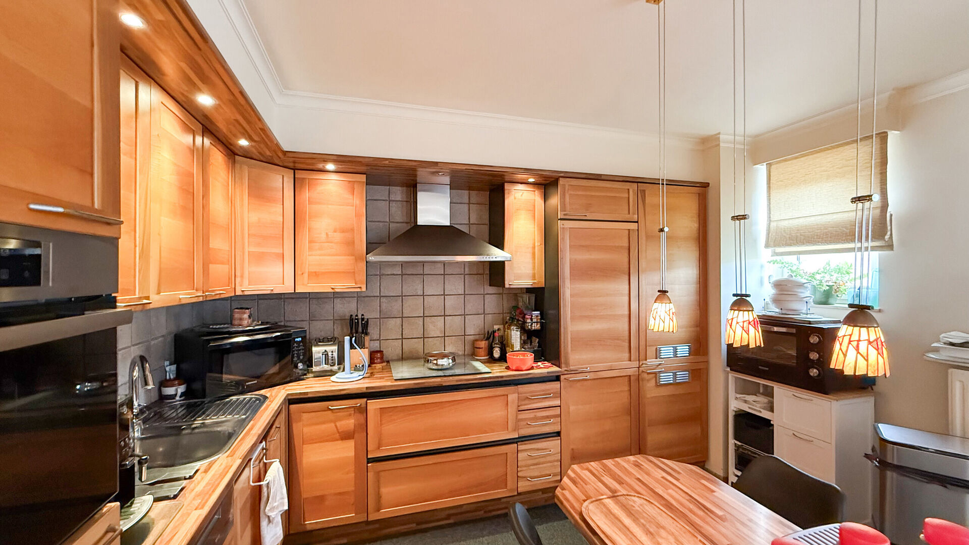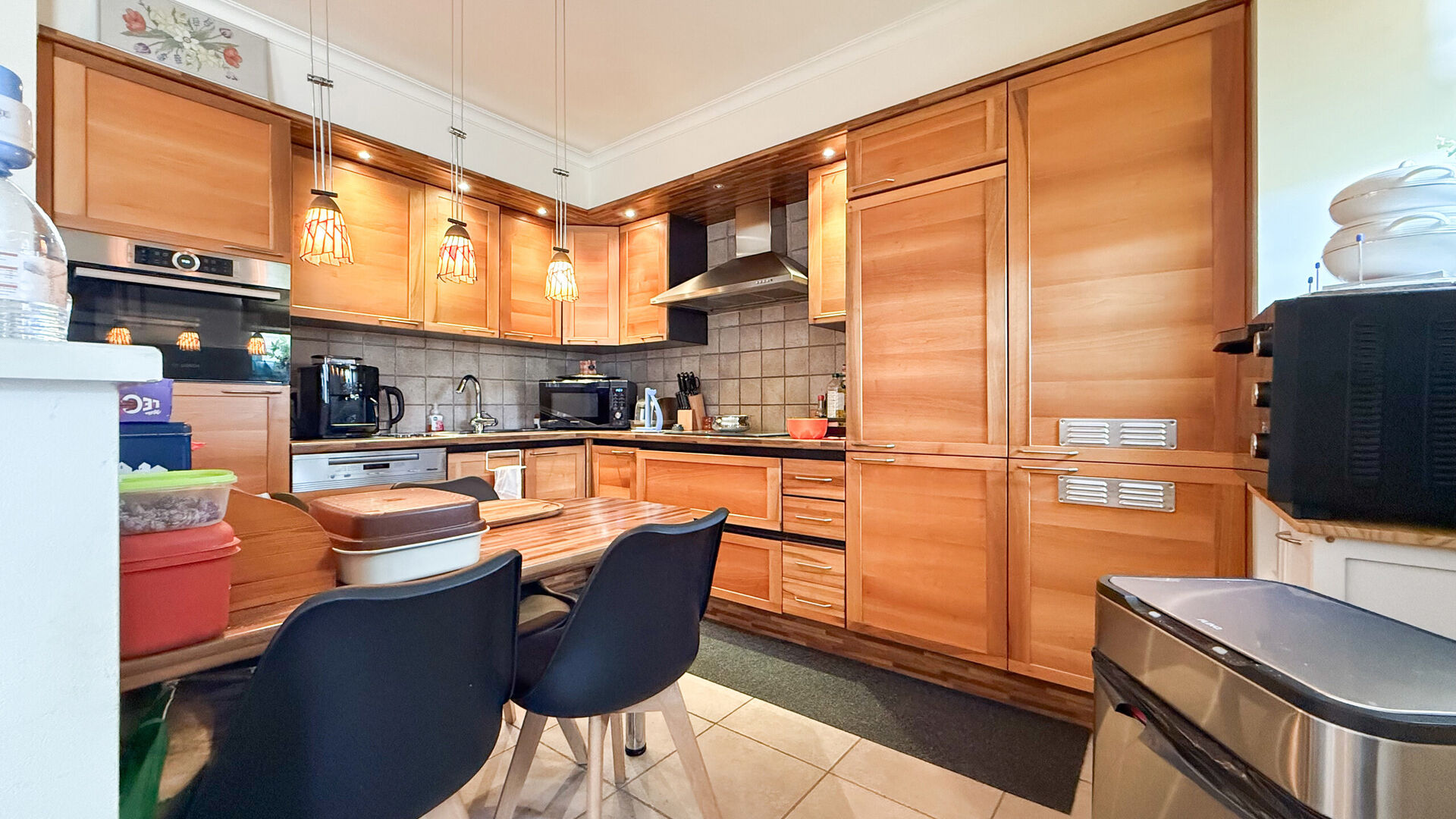 De open keuken is een waar pareltje voor wie houdt van koken in stijl: uitgerust met hoogwaardige inbouwtoestellen zoals een inductievuur, vaatwasser en oven. De aansluitende eetruimte nodigt uit tot lange avonden tafelen in goed gezelschap.