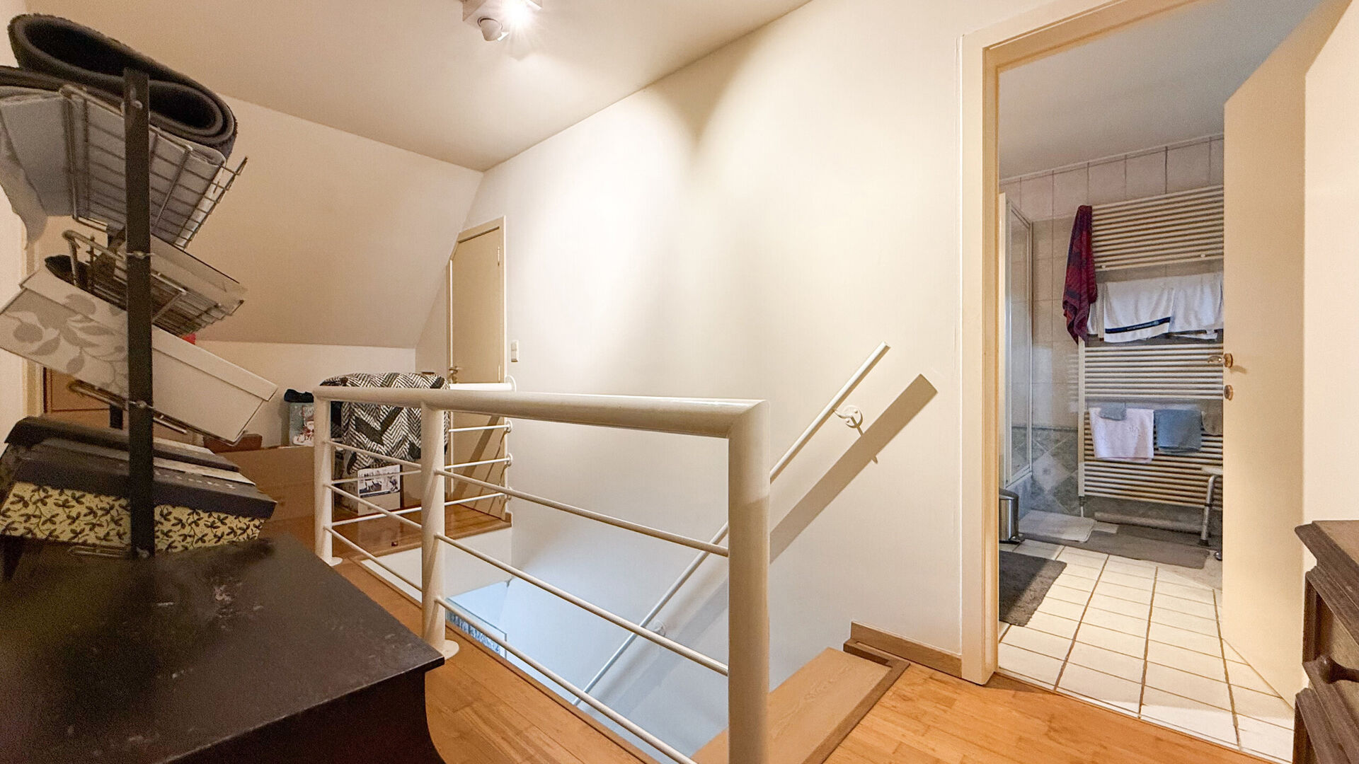 Vanaf de gemeenschappelijke inkom met lift bereikt u moeiteloos zowel de zeer ruime kelderverdieping als het woongedeelte op de eerste verdieping.