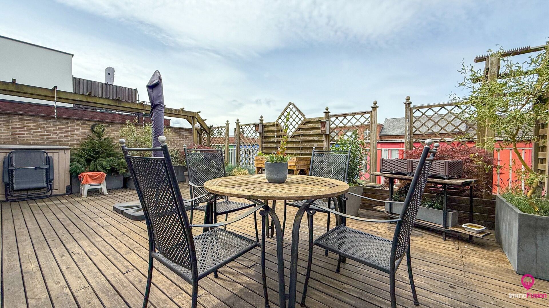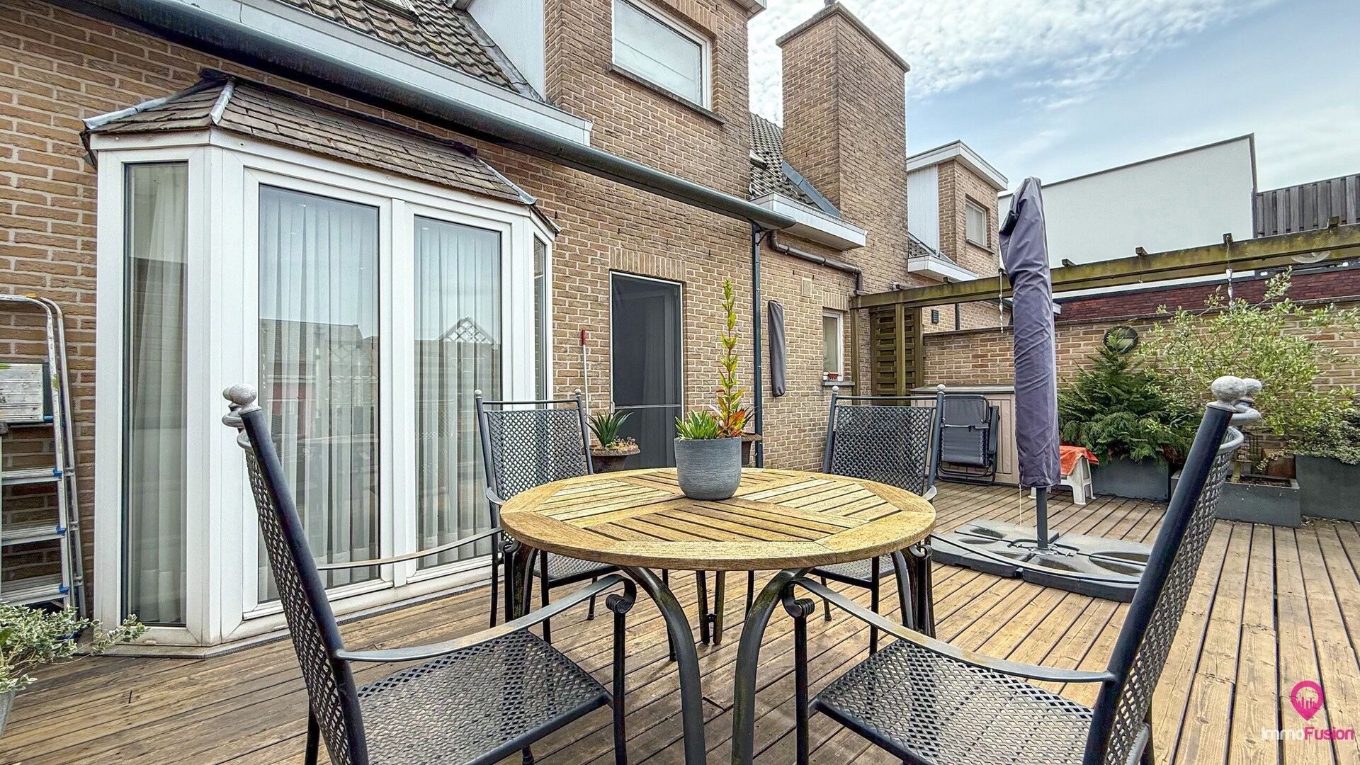 Vanuit de leefruimte betreedt u via een schuifraam het adembenemend mooie houten terras: een intieme buitenruimte voorzien van grote bloembakken, een automatische zonwering en volledige privacy. Ideaal voor zonnige brunches, rustige leesmomenten of sfeervolle diners onder de sterrenhemel.