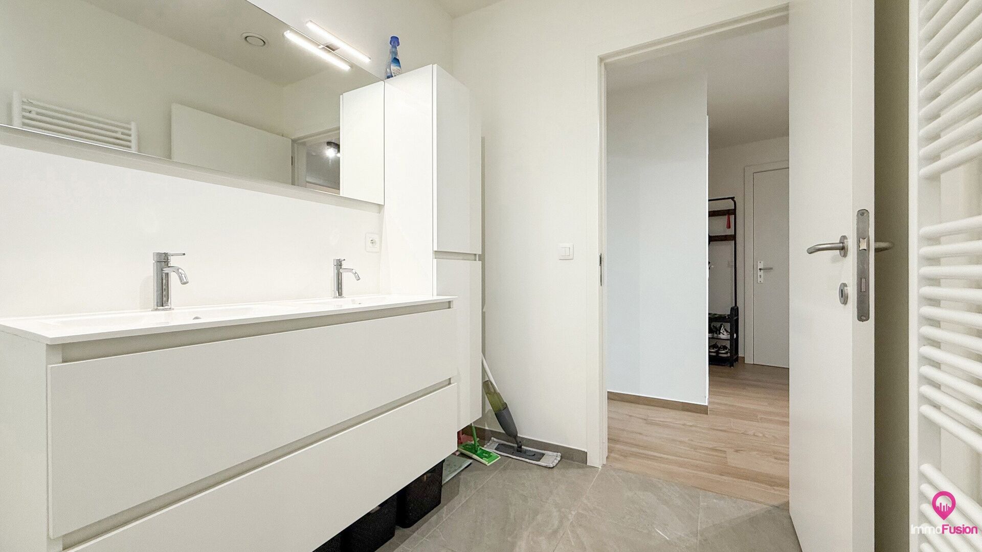 Aansluitend aan de keuken bevindt zich een praktische berging/wasruimte, wat het dagelijks comfort verhoogt. De badkamer is stijlvol afgewerkt en voorzien van een inloopdouche en dubbele wastafel.