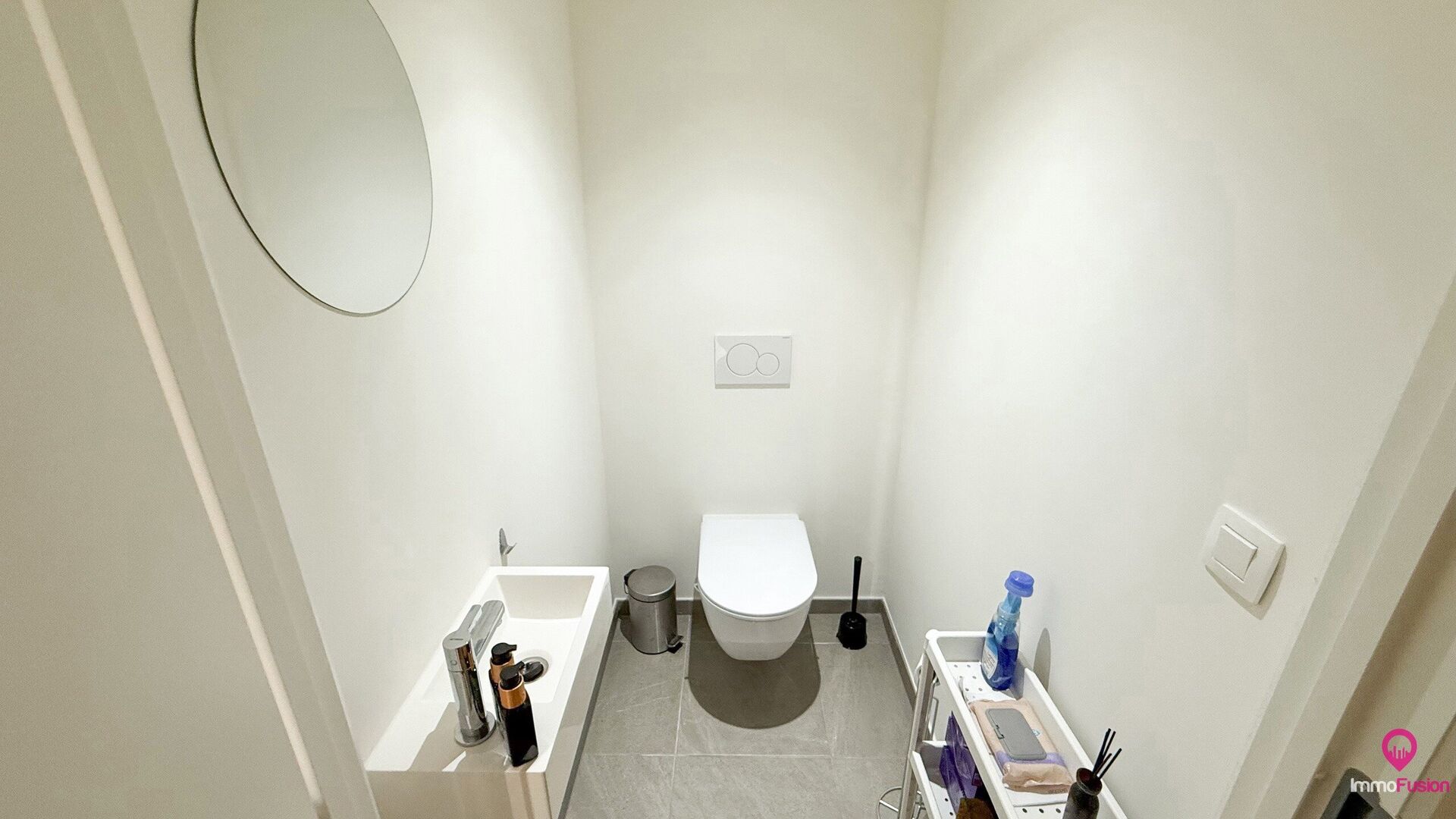 Bij het binnenkomen verwelkomt de inkomhal je met plaats voor een vestiairekast en directe toegang tot het aparte toilet. Vanuit de hal stap je in de open leefruimte, waar grote raampartijen zorgen voor een overvloed aan natuurlijk licht.