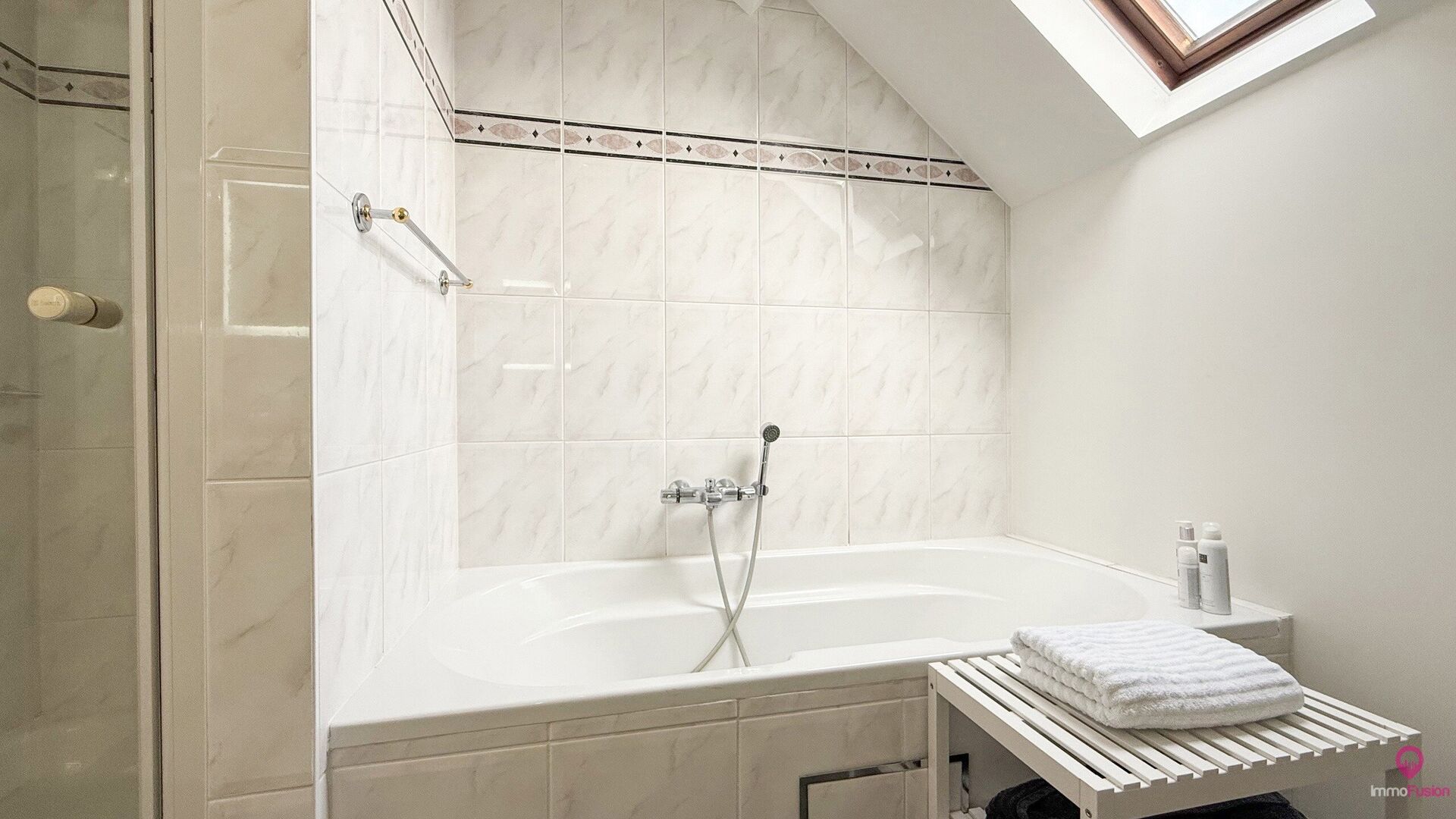 De badkamer werd volledig opgefrist en is voorzien van zowel een ligbad als een douche, wat zorgt voor optimaal comfort.