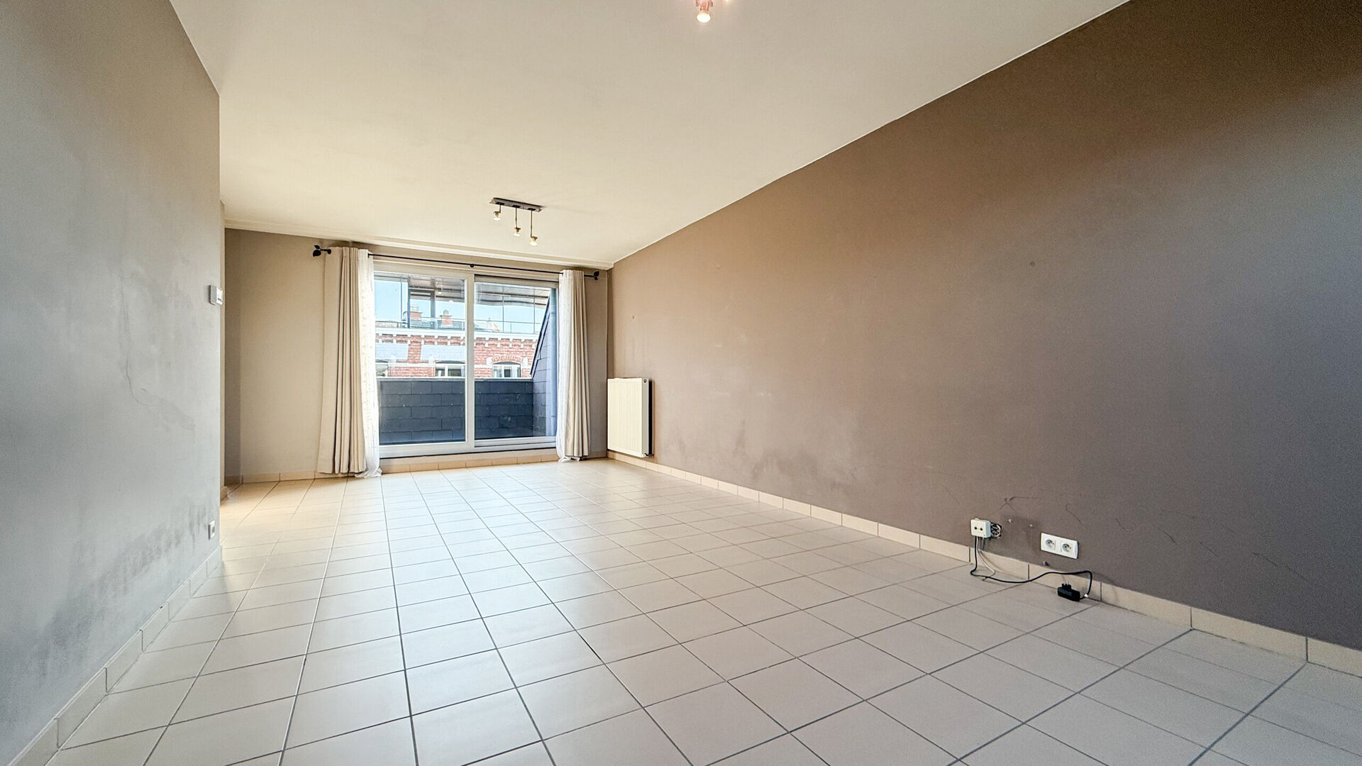Via de woonkamer leidt een deur naar het ruime, inpandige terras, ideaal voor ontspanning in de buitenlucht. Terug via de gang bereiken we de gezellige badkamer met een douche en lavabomeubel. Het biedt een ruime slaapkamers en de mogelijkheid tot uitbreiding van de zolderruimte naar een 2e slaapkamer, ideaal voor een koppel of klein gezin.