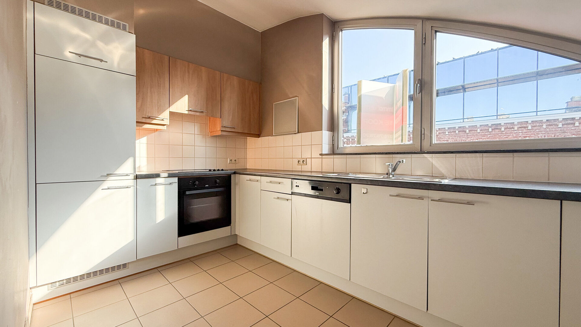 U begeeft zich met de lift tot het bovenste verdiep. Bij binnenkomst valt de gezelligheid direct op, wat meteen zorgt voor een warme welkom . Het aparte toilet voegt comfort en praktisch gemak toe. De grote leefruimte, straalt potentieel uit en laat ruimte voor persoonlijke smaak. Het natuurlijke licht benadrukt de potentiele charme van de kamer, die verbonden is met de volledig geïnstalleerde keuken.