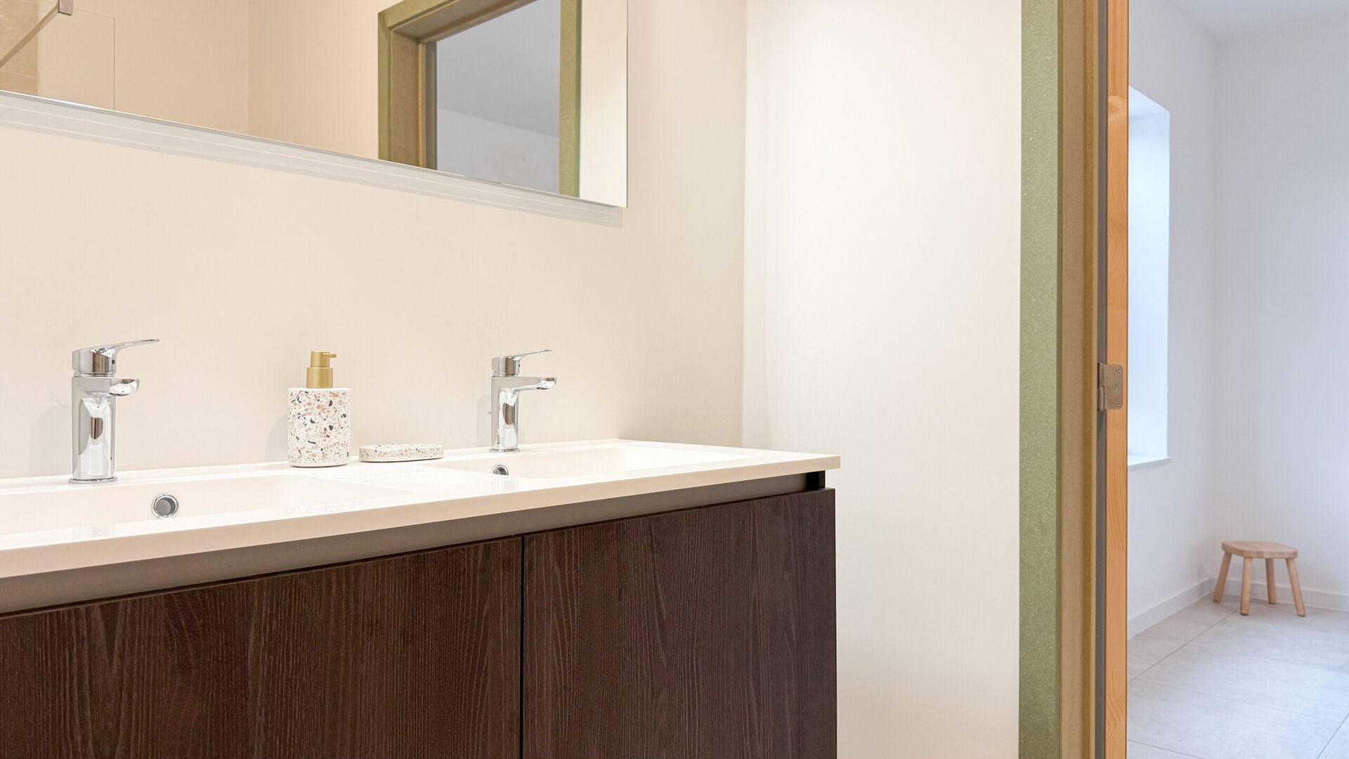 Vooraan in de inkomhal bevindt zich een gastentoilet. Via de nachthal bereikt men de 3 slaapkamers waarvan 1 met eigen badkamer.
