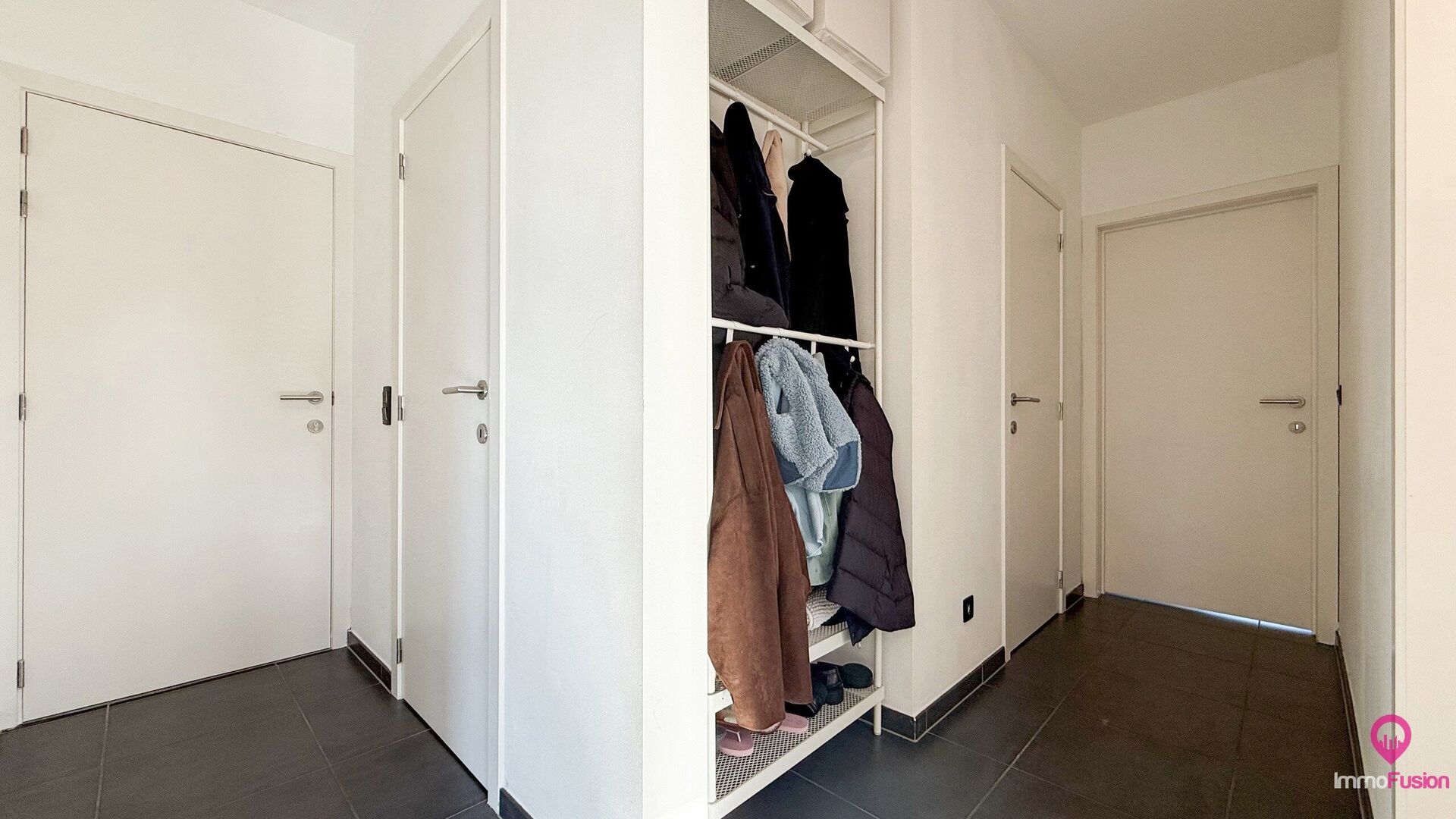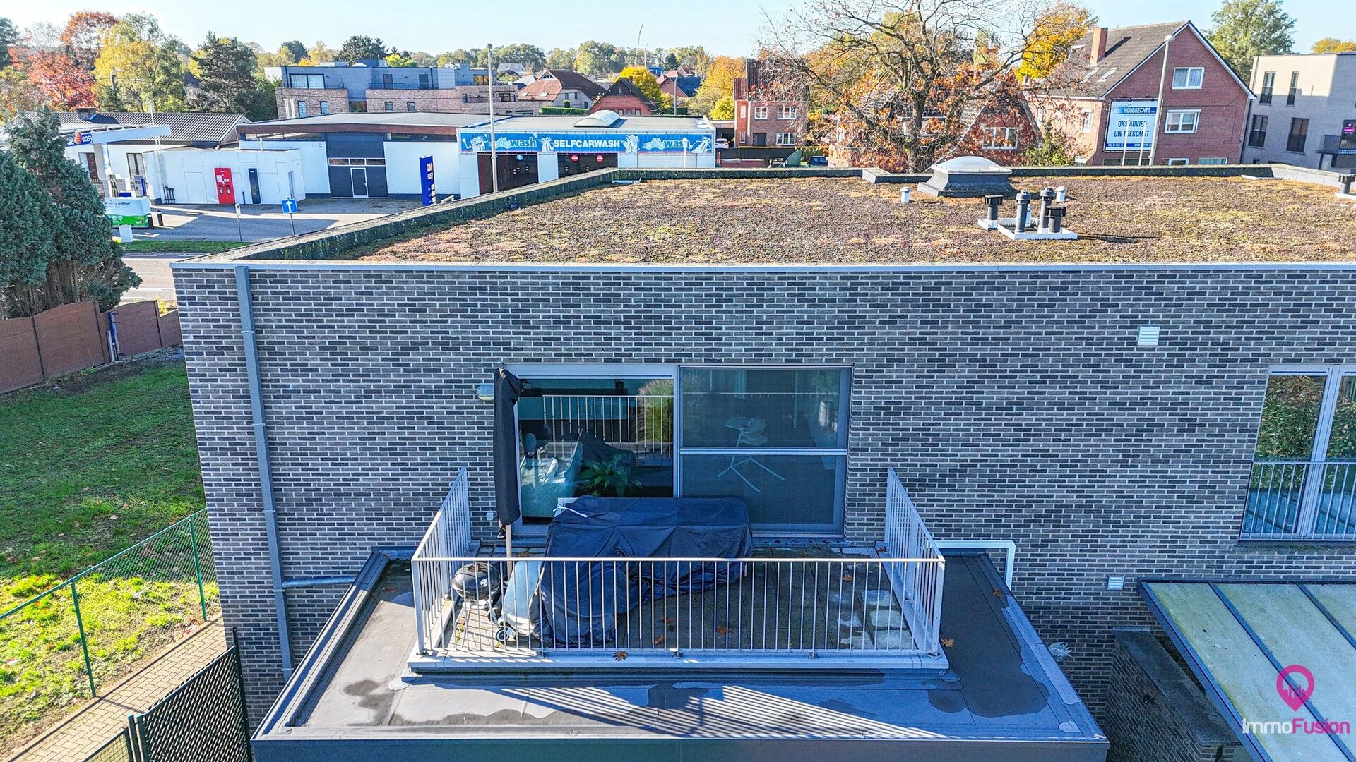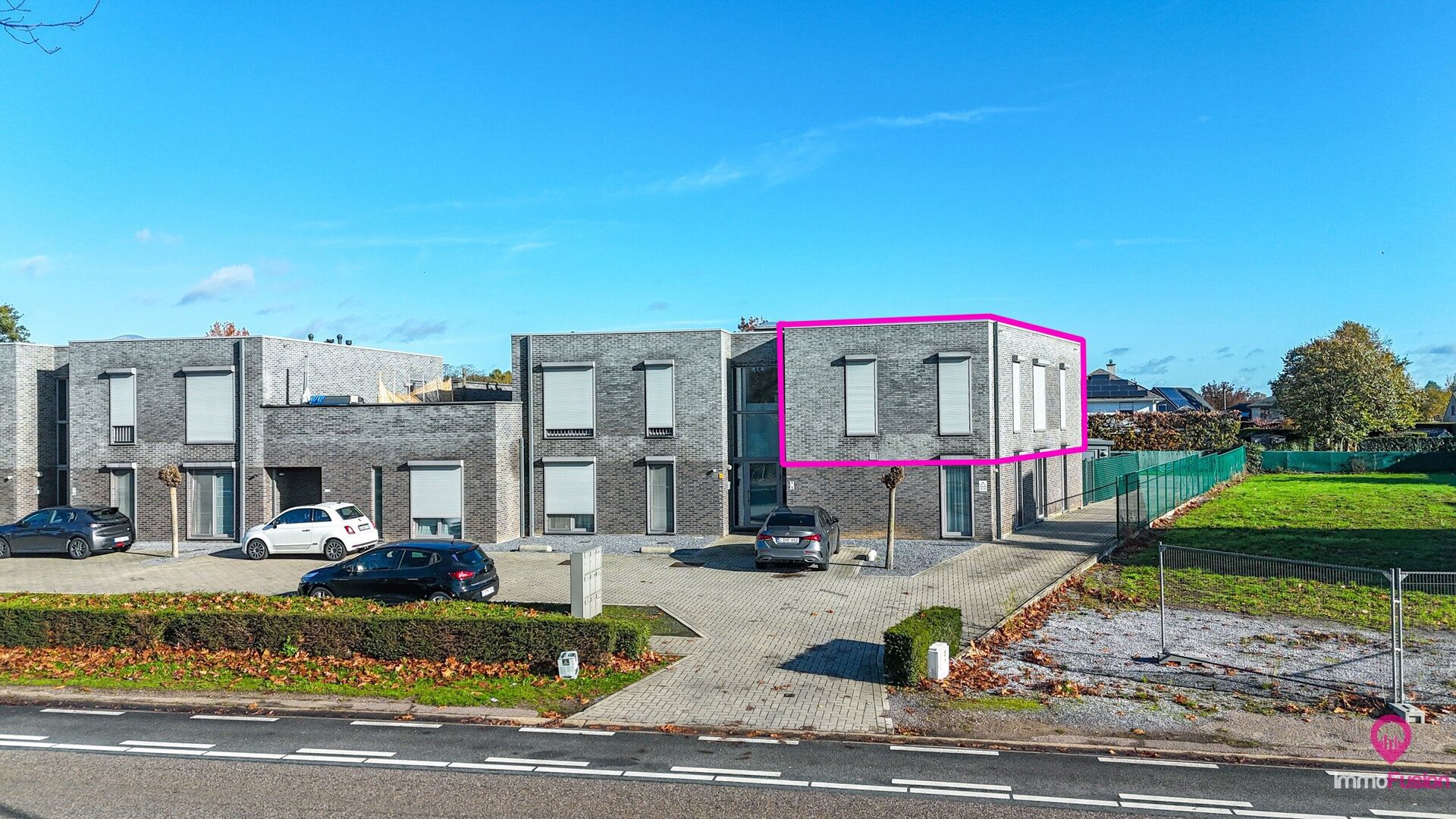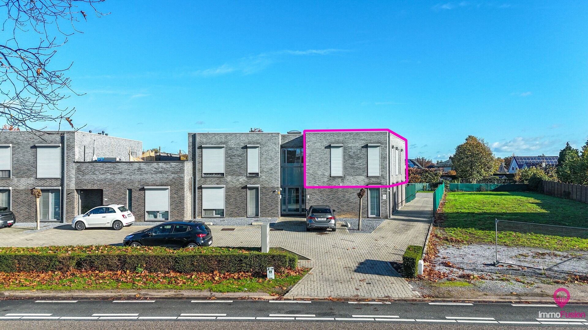 Aan de voorkant van het gebouw zijn voldoende parkeerplaatsen voorzien, wat het dagelijks comfort extra verhoogt. De ligging is bovendien een grote troef: er bevindt zich een supermarkt op slechts twee minuten wandelen, een bushalte ligt recht voor de deur, en ook scholen, winkels en restaurants zijn makkelijk bereikbaar te voet of met de fiets. De oprit van de autostrade ligt op amper vier minuten rijden, waardoor zowel woon-werkverkeer als uitstapjes bijzonder vlot verlopen.