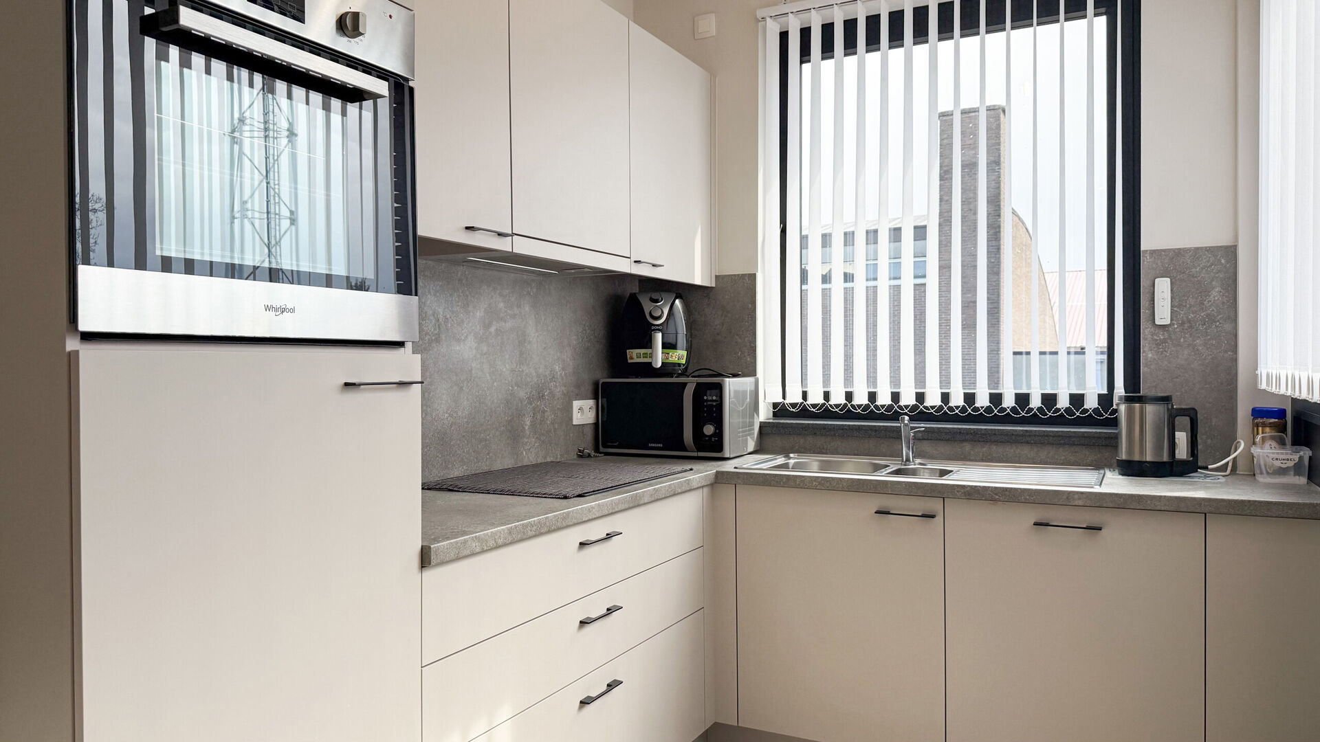 De moderne keuken sluit perfect aan bij het geheel en biedt alle comfort voor dagelijks gebruik. De open connectie met de leefruimte maakt dit de perfecte plek om te koken en tegelijk in contact te blijven met familie of gasten.