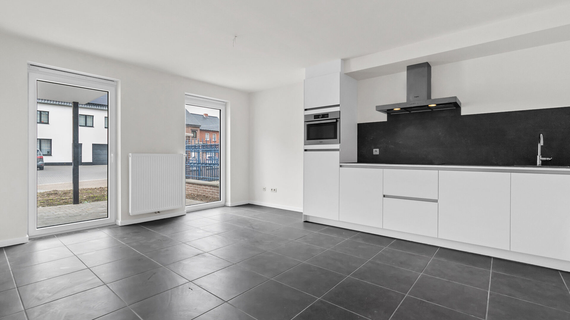 De keuken is volledig uitgerust met moderne apparatuur: een keramisch kookvuur, dampkap, koelkast, combi-oven/microgolf en vaatwasser, waardoor de ruimte zowel praktisch als stijlvol is. De badkamer heeft een strakke, moderne uitstraling met een inloopdouche met regendouche, een stijlvolle lavabo en een sierradiator die een extra touch toevoegt.