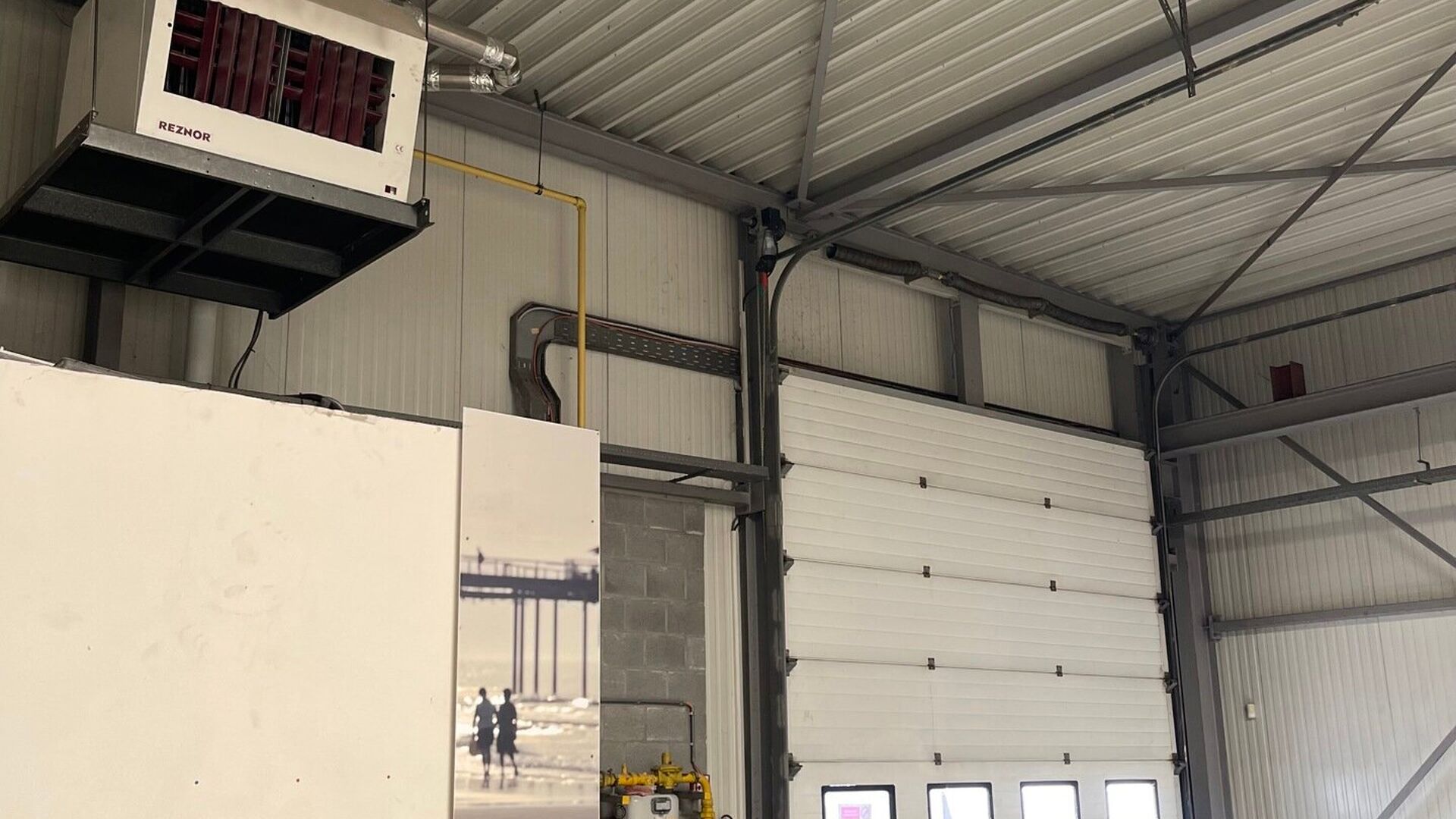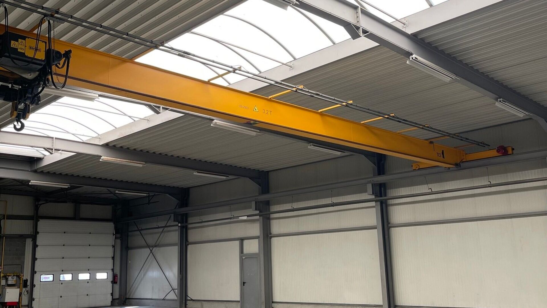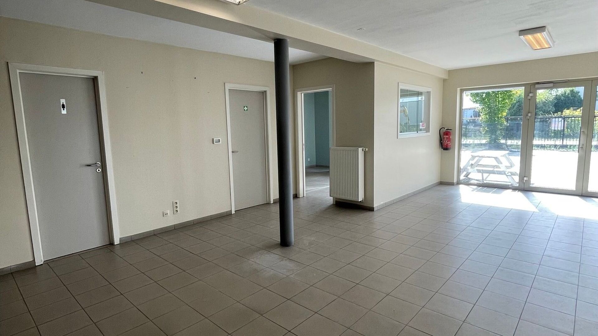 Het gebouw bestaat uit een productiehal/magazijn van 900 m² en een gelijkvloerse kantoor- en toonzaalruimte van 100 m². De hal is functioneel uitgerust en geniet van natuurlijke lichtinval dankzij een lichtstraat. Voor een vlotte logistieke werking zijn er twee sectionaalpoorten aanwezig, evenals een rolbrug met een capaciteit van 3,2 ton en een geïntegreerde persluchtinstallatie.