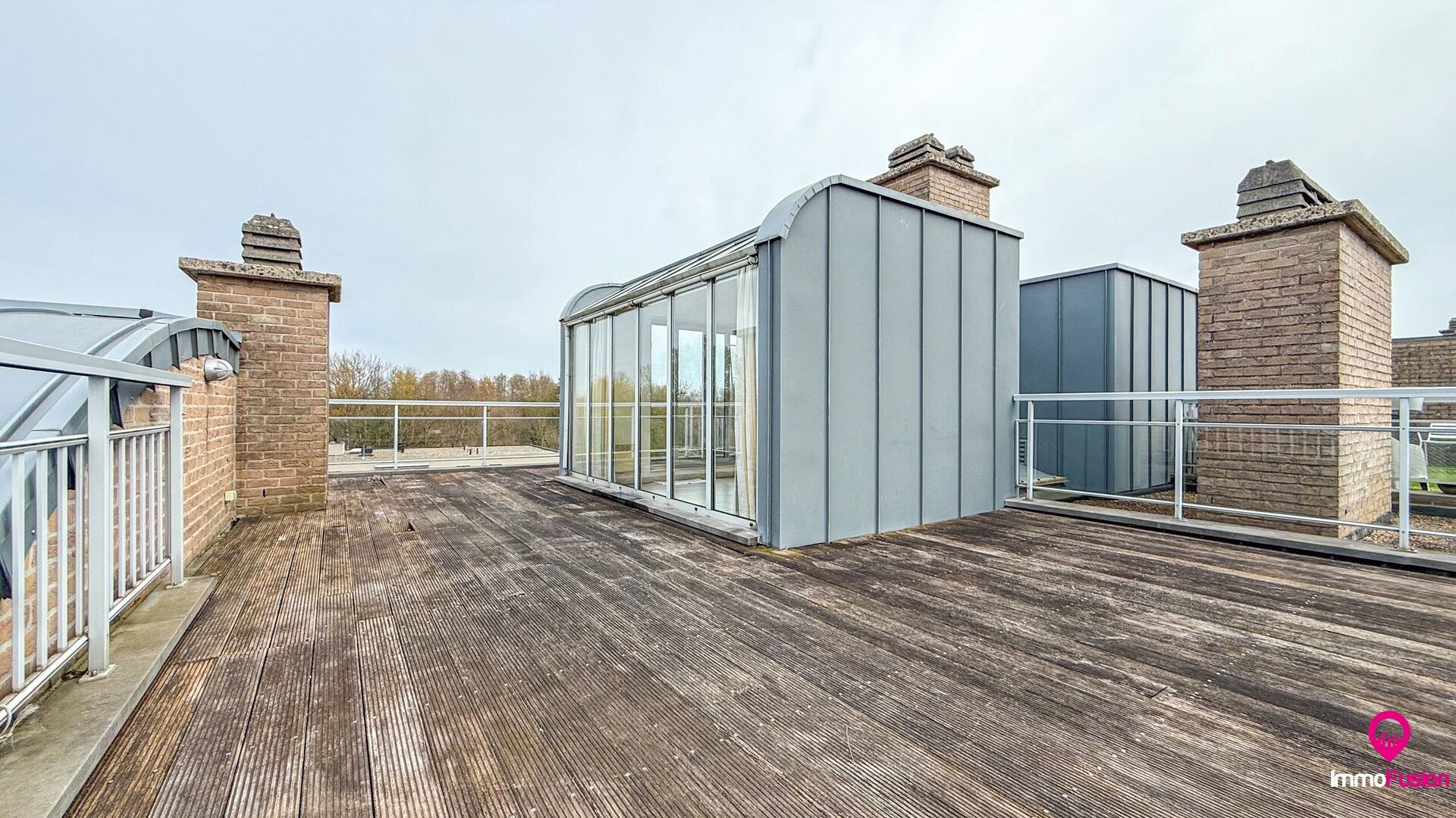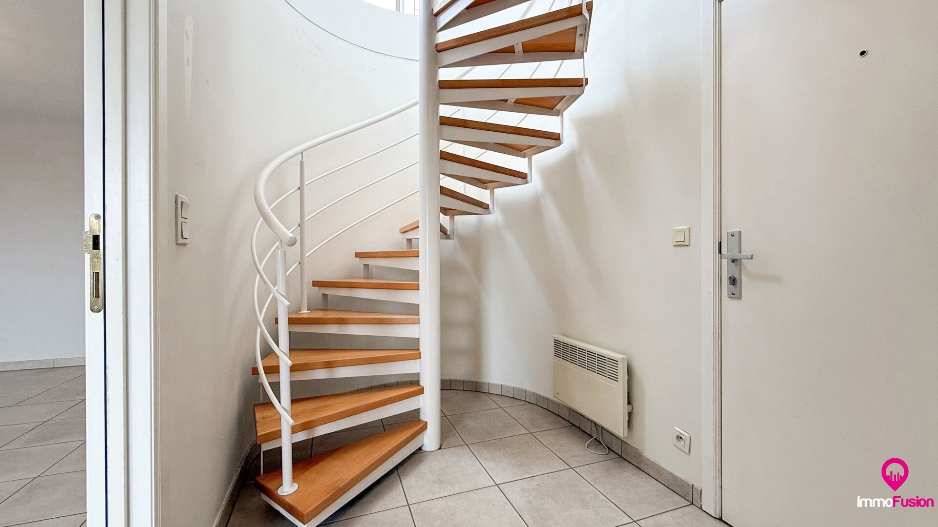 Bij binnenkomst in de inkomhal wordt u meteen verwelkomd door een verzorgde uitstraling. Aan de rechterzijde bevindt zich de trap die leidt naar de bovenste verdieping, waar zich een extra kamer bevindt met directe toegang tot het gezellige dakterras. Wanneer u verder doorloopt, komt u terecht in de ruime en lichtrijke living. Dankzij de grote raampartijen geniet deze ruimte van een aangename natuurlijke lichtinval.