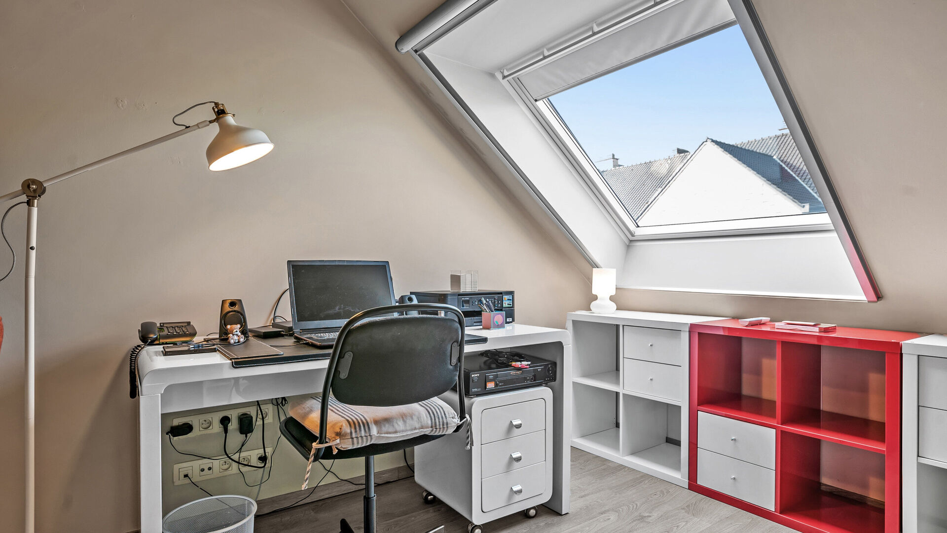 Verder op deze verdieping bevindt zich een ruime slaapkamer, een moderne badkamer met ligbad, douche, toilet en lavabo, een aparte wasruimte met aansluitingen voor wasmachine en droogkast, en een kamer die momenteel dienstdoet als dressing.