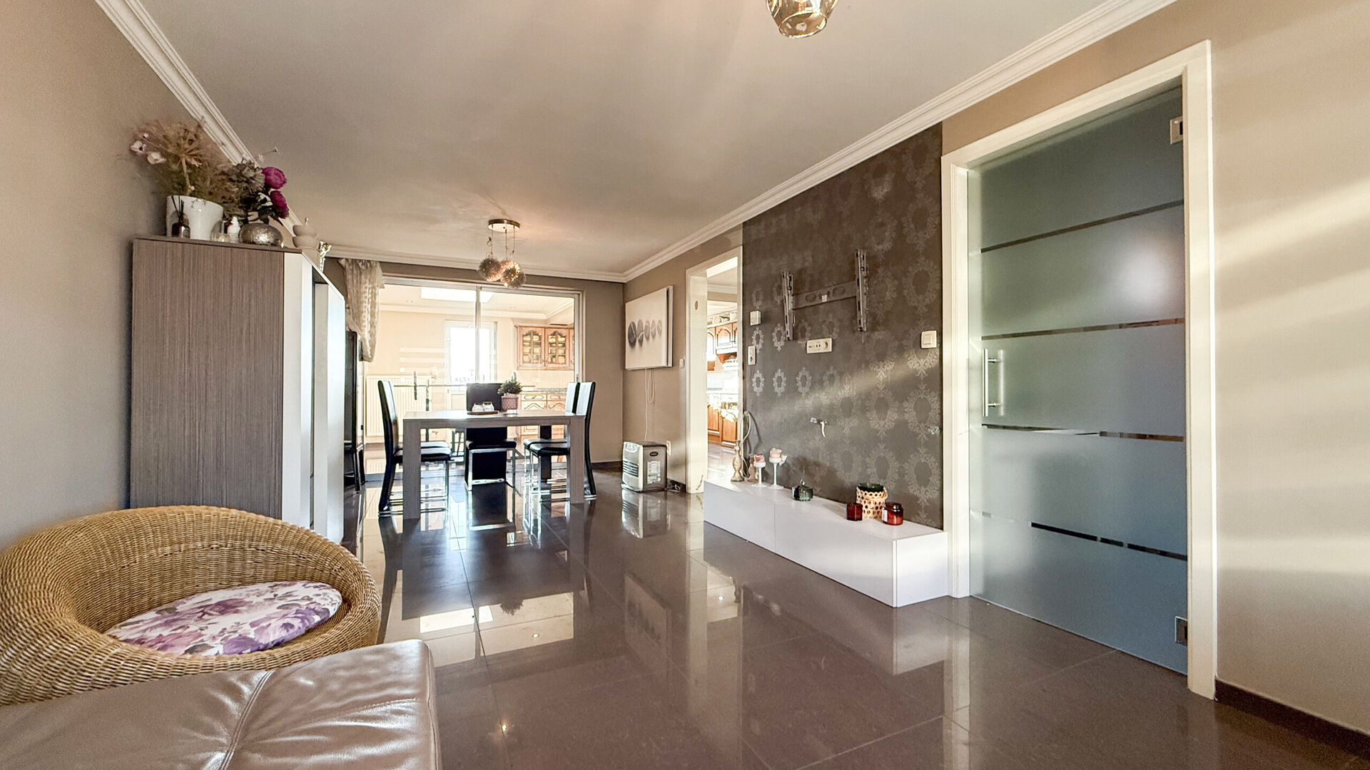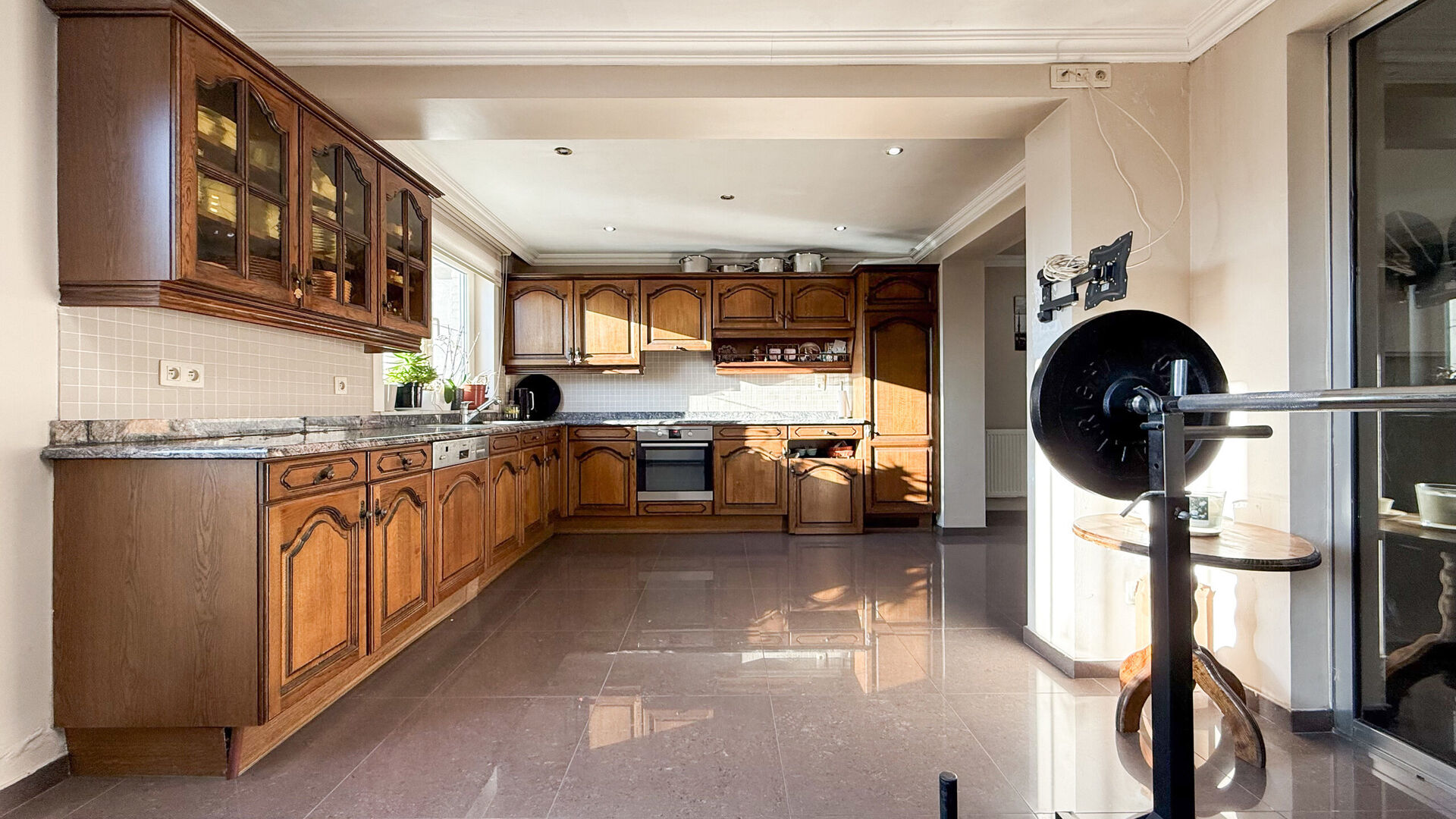 De woning werd modern en smaakvol ingericht en biedt een praktische, hedendaagse indeling. Blikvanger is de zeer ruime en lichtrijke keuken, uitgerust met een oven en vaatwasser, waar koken en samenkomen centraal staan. Aansluitend bevindt zich een ruime eetkamer met gezellig zitgedeelte, wat zorgt voor een open en aangename leefruimte. Verder is er op het gelijkvloers een apart gastentoilet aanwezig.