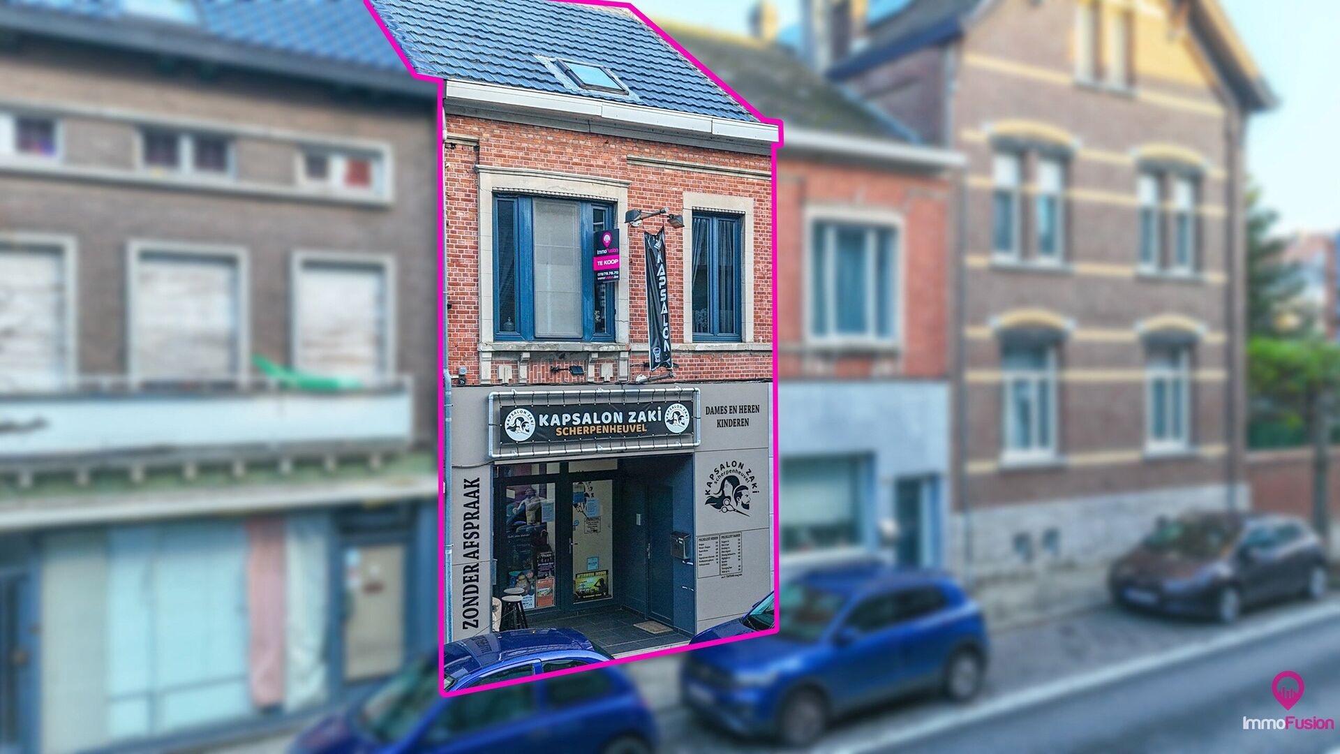 Het handelspand is momenteel ingericht en verhuurd als kapperszaak en biedt een mooie investeringsopportuniteit, maar leent zich evengoed voor andere commerciële activiteiten. Het ruime duplex appartement erboven beschikt over alle comfort om zelf te bewonen of verder te verhuren.