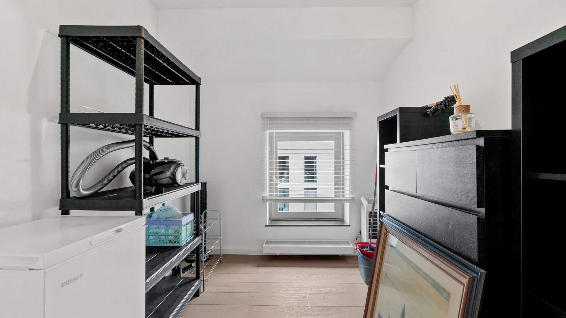 Via een strakke houten trap bereik je de bovenverdieping, afgewerkt met een lichte houten laminaat. Hier bevinden zich vier slaapkamers, een aparte berging, een extra toilet en een ruime badkamer.