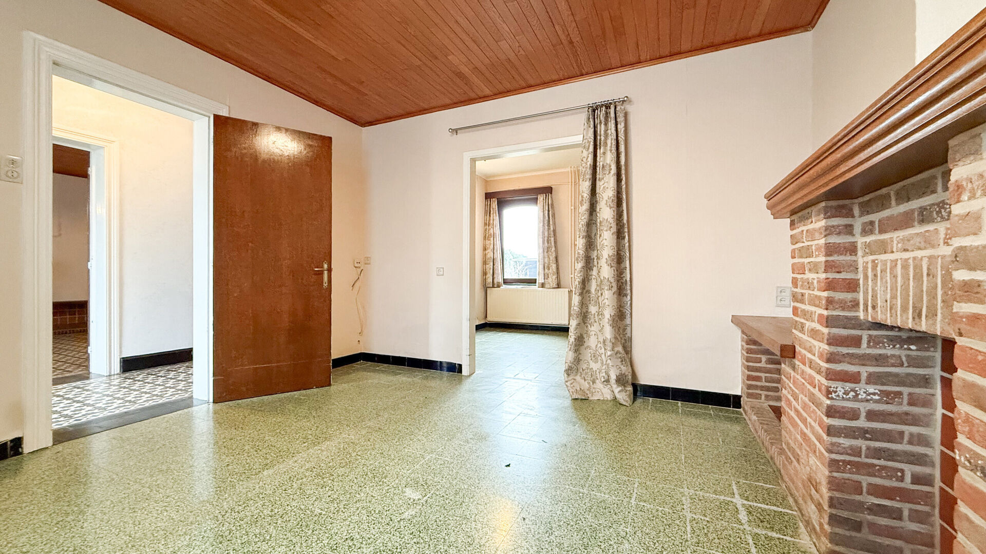 De woning heeft een bewoonbare oppervlakte van ca. 175 m² en vormt een ideale basis voor wie op zoek is naar een renovatieproject met authenticiteit en potentieel. Via de mooie inkomhal met authentieke tegelvloer en trap betreden we de woning. De leefruimte is klassiek ingedeeld in een “goede kamer” en een aparte zitplaats, wat bijdraagt aan de landelijke charme. Daarnaast is er een afzonderlijke eetruimte.