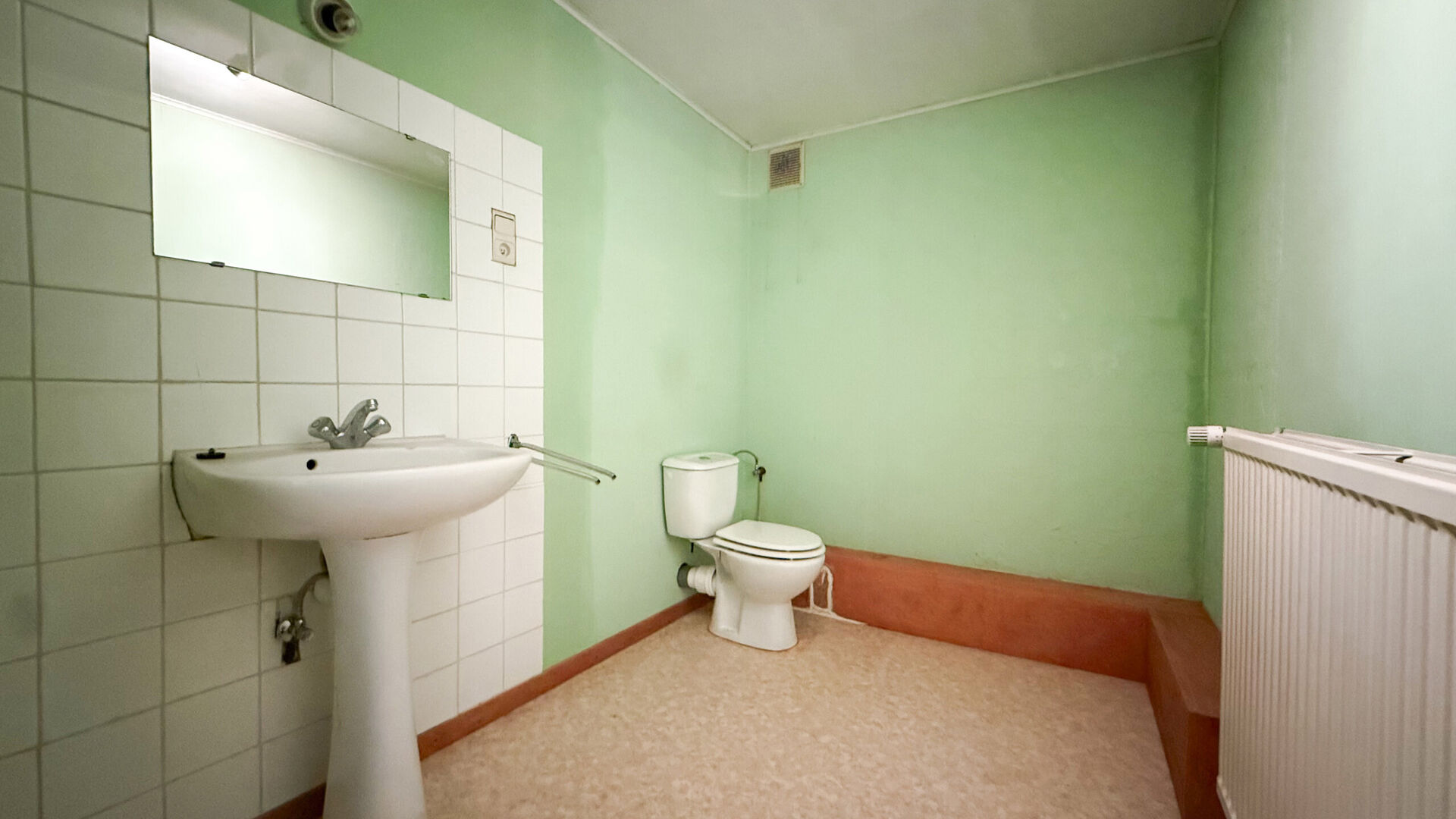 De keuken is deels geïnstalleerd en toe aan vernieuwing. Verder beschikt het gelijkvloers over een zeer eenvoudige badkamer die vernieuwd kan worden en een apart toilet. De woning is deels onderkelderd en beschikt over een inpandige garage.