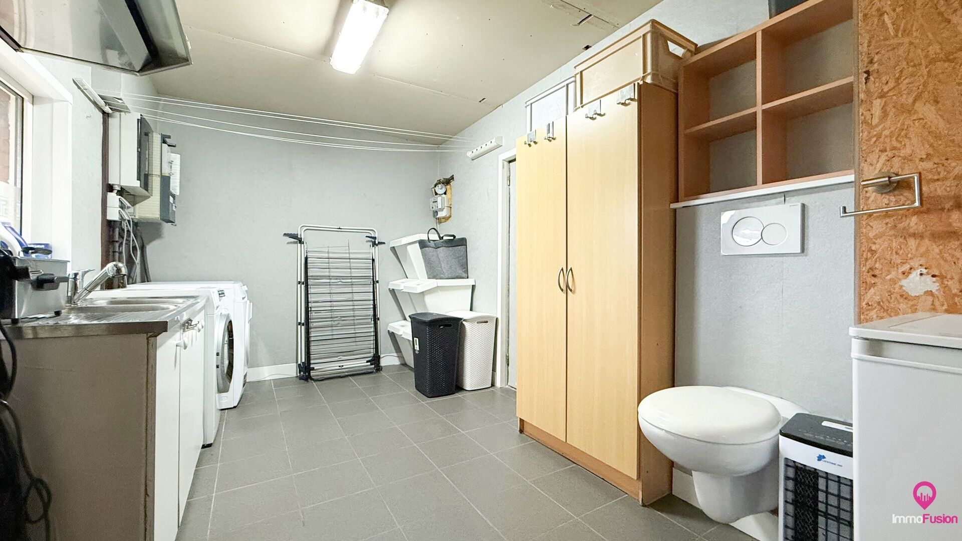 Voor de toiletten geldt: één apart toilet op het gelijkvloers, en een tweede toilet bevindt zich in de berging/wasruimte — handig en functioneel.
