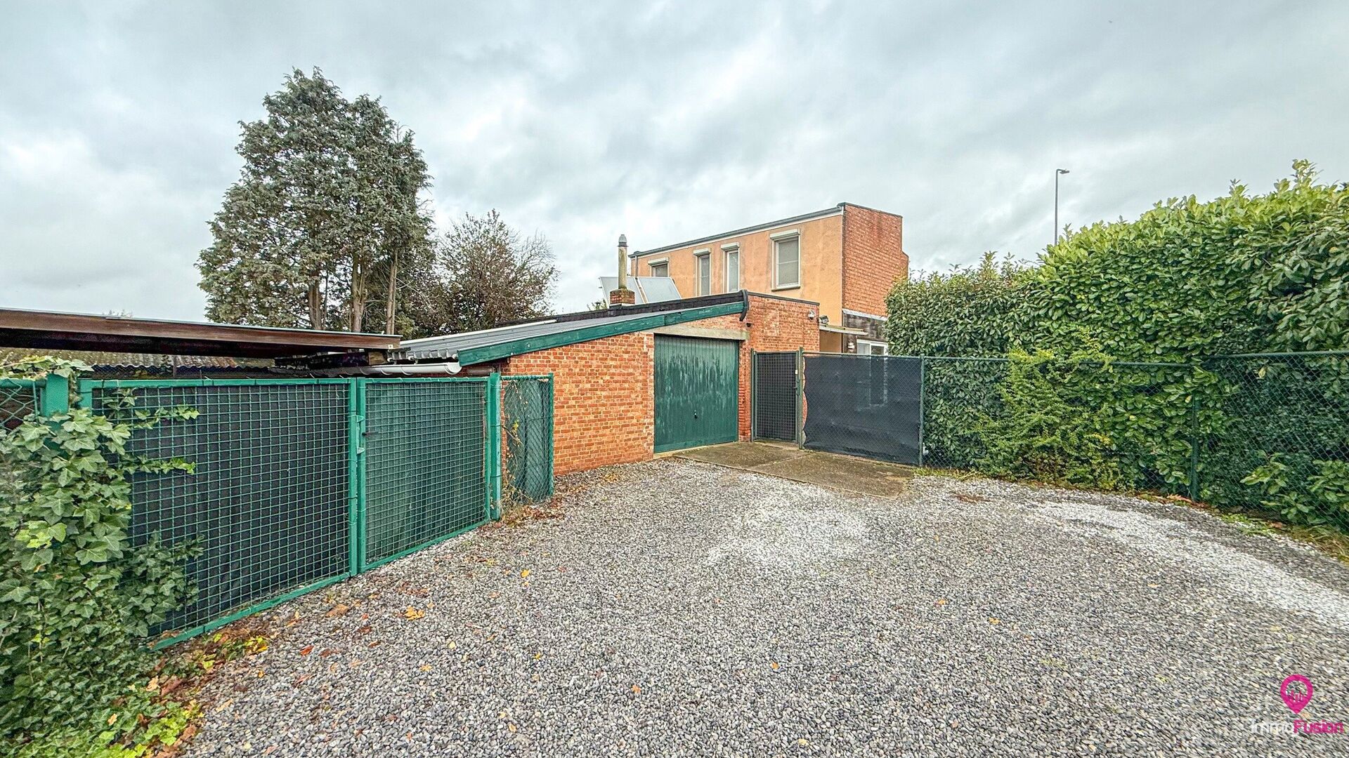 Bij aankomst valt meteen de indrukwekkende perceelbreedte op én de privacy die een volledig omheind terrein biedt. Via een achtertoegang met de auto bereik je de garage en carport, ideaal voor vlot parkeren of het realiseren van een praktische hobby- of werkruimte.