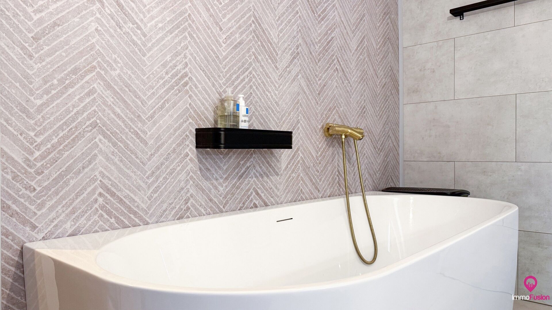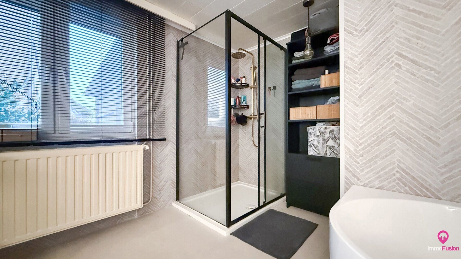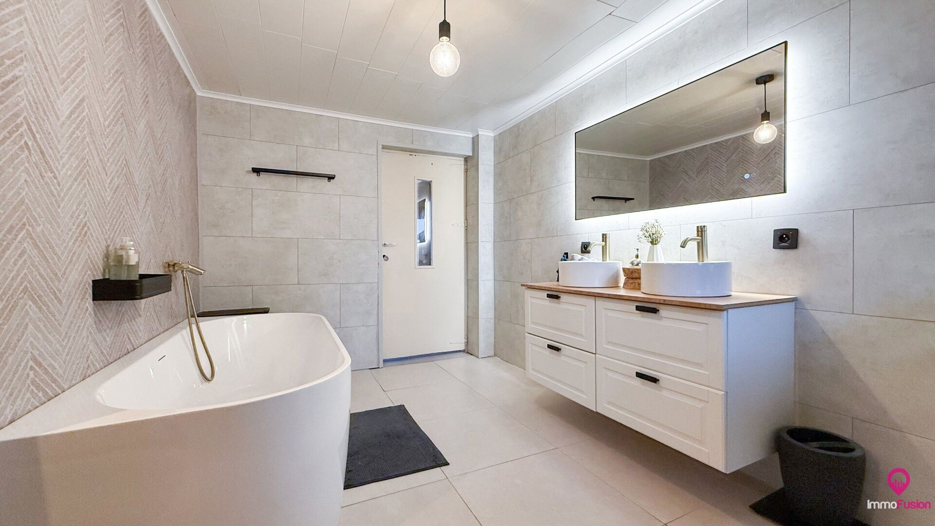 De luxe badkamer is een echte troef: uitgerust met een ligbad, een ruime inloopdouche, een dubbele lavabo en een aparte wasruimte met aansluitingen voor wasmachine en droogkast.