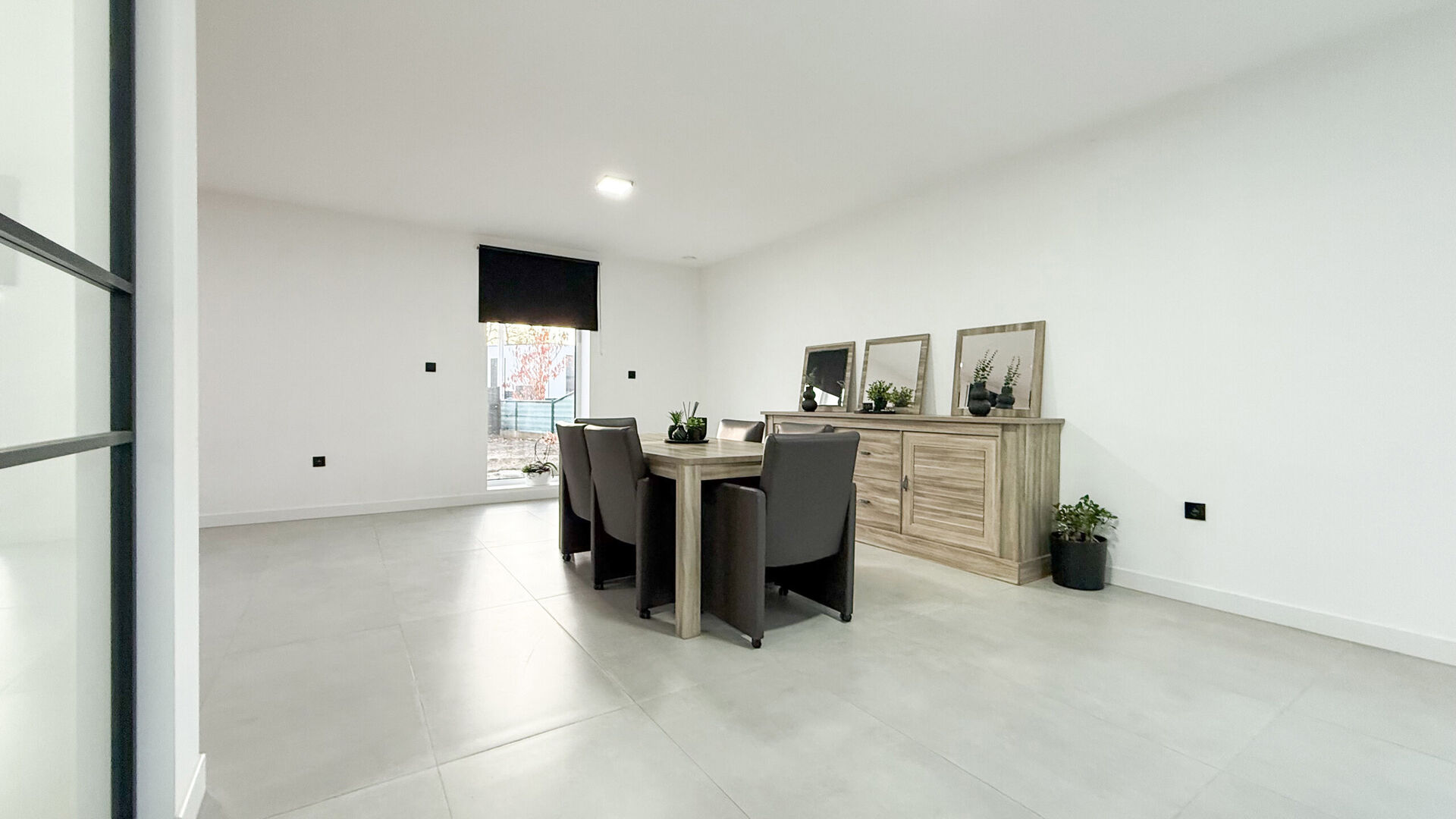 De ruime, volledig afgewerkte garage is een zeldzame troef en kan perfect dienen als hobbyruimte, fietsenberging of extra stockage. De combinatie van de strakke eilandkeuken, het gepolierd betonnen terras en de doordachte indeling maken deze woning tot een echte instapklare parel.