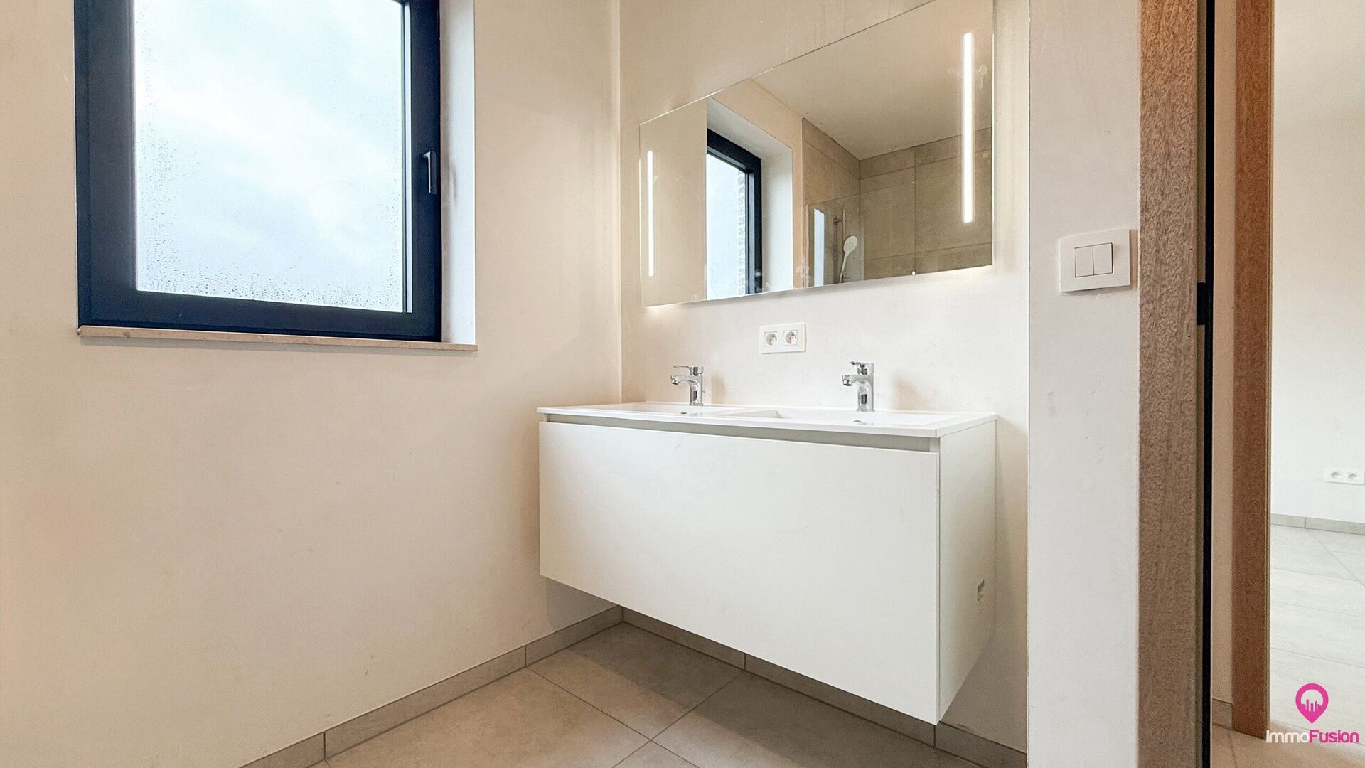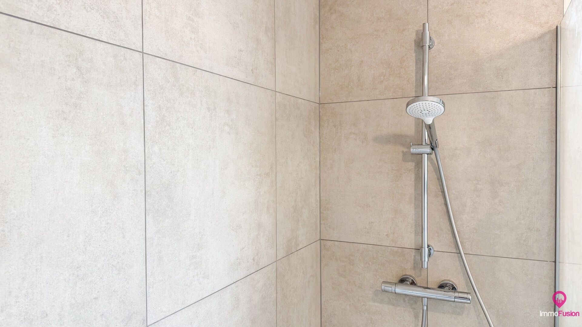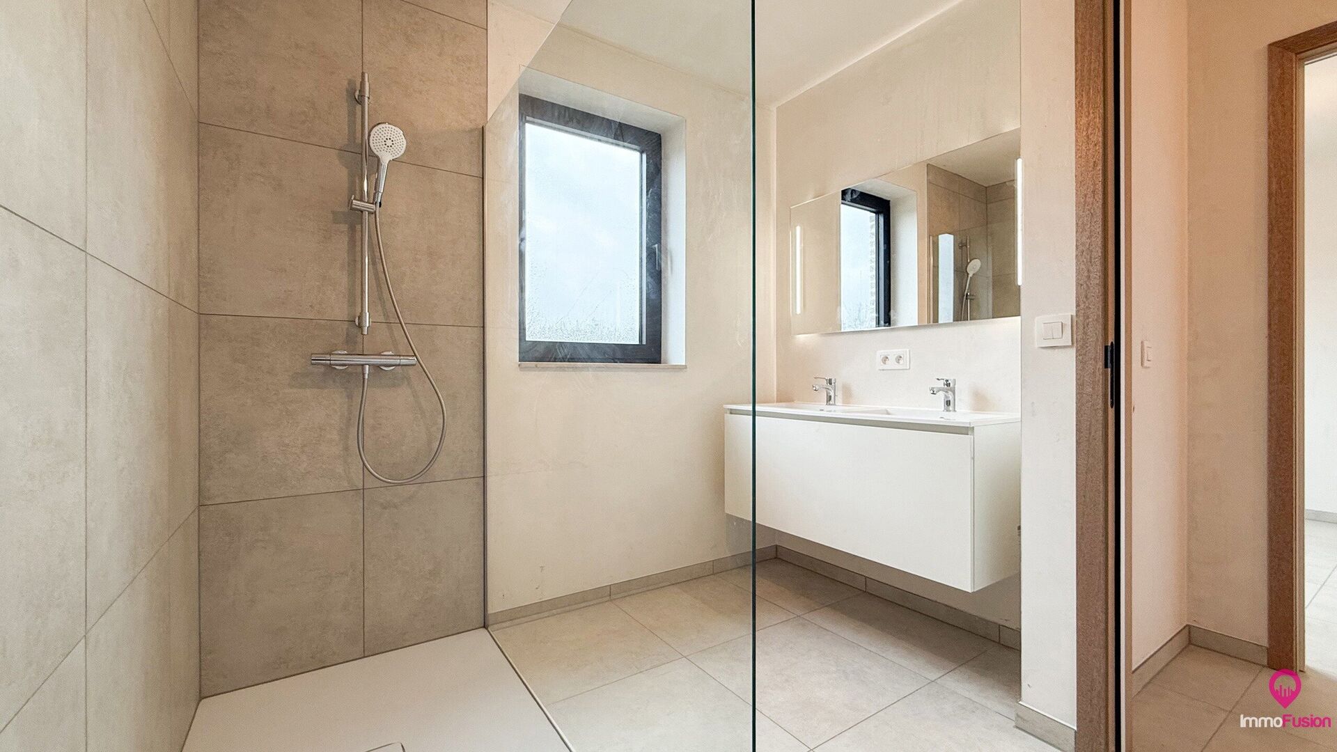 Op de bovenverdieping bevinden zich vier volwaardige slaapkamers, een nachthal, een aparte toiletruimte en een moderne badkamer uitgerust met een dubbele lavabo en een inloopdouche. In totaal beschikt de woning over twee aparte toiletten: één beneden in de inkomhal en één boven.