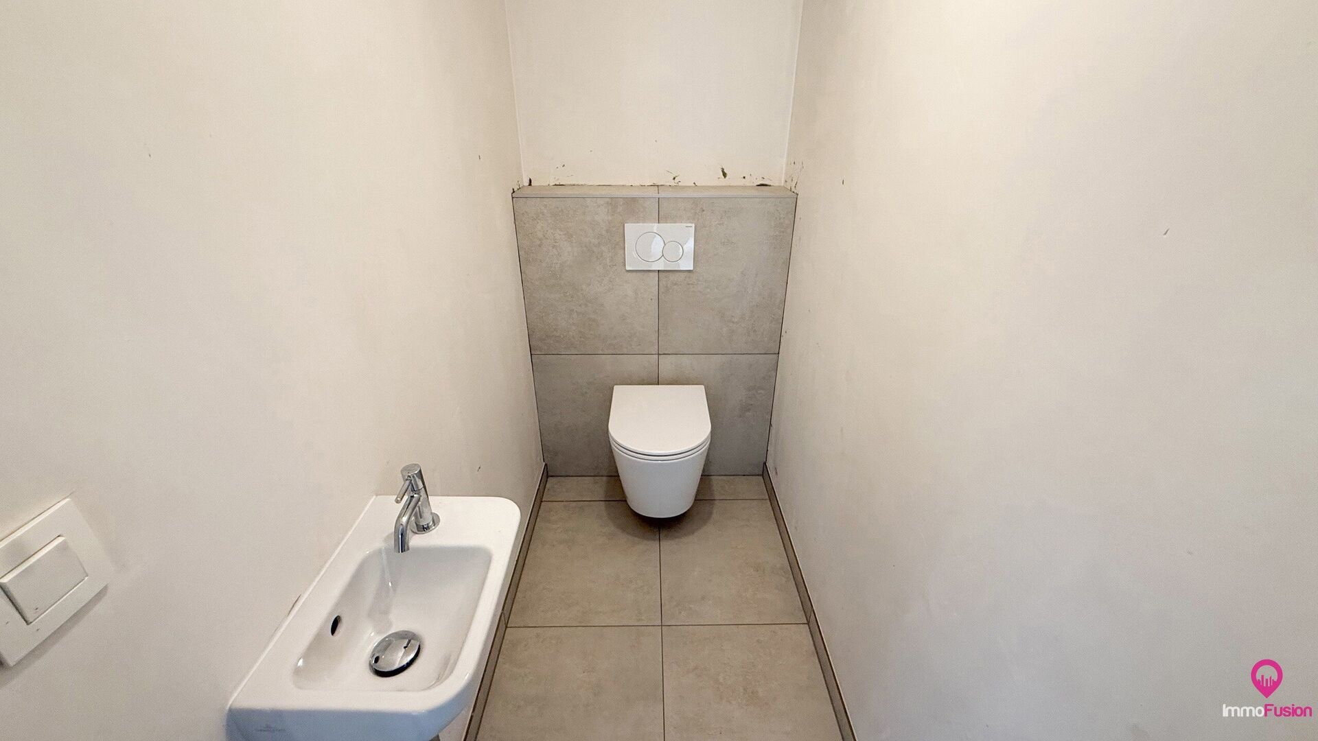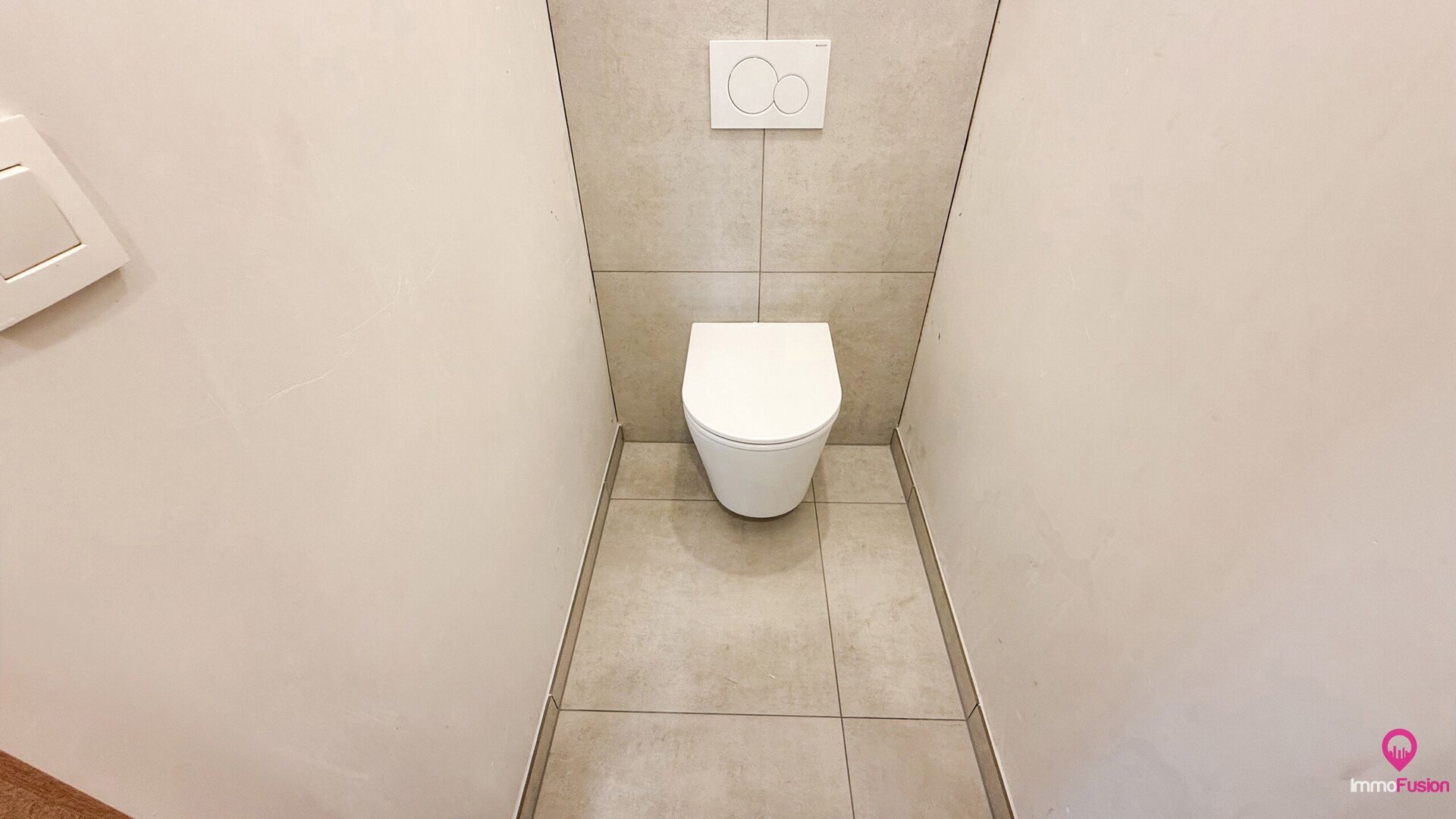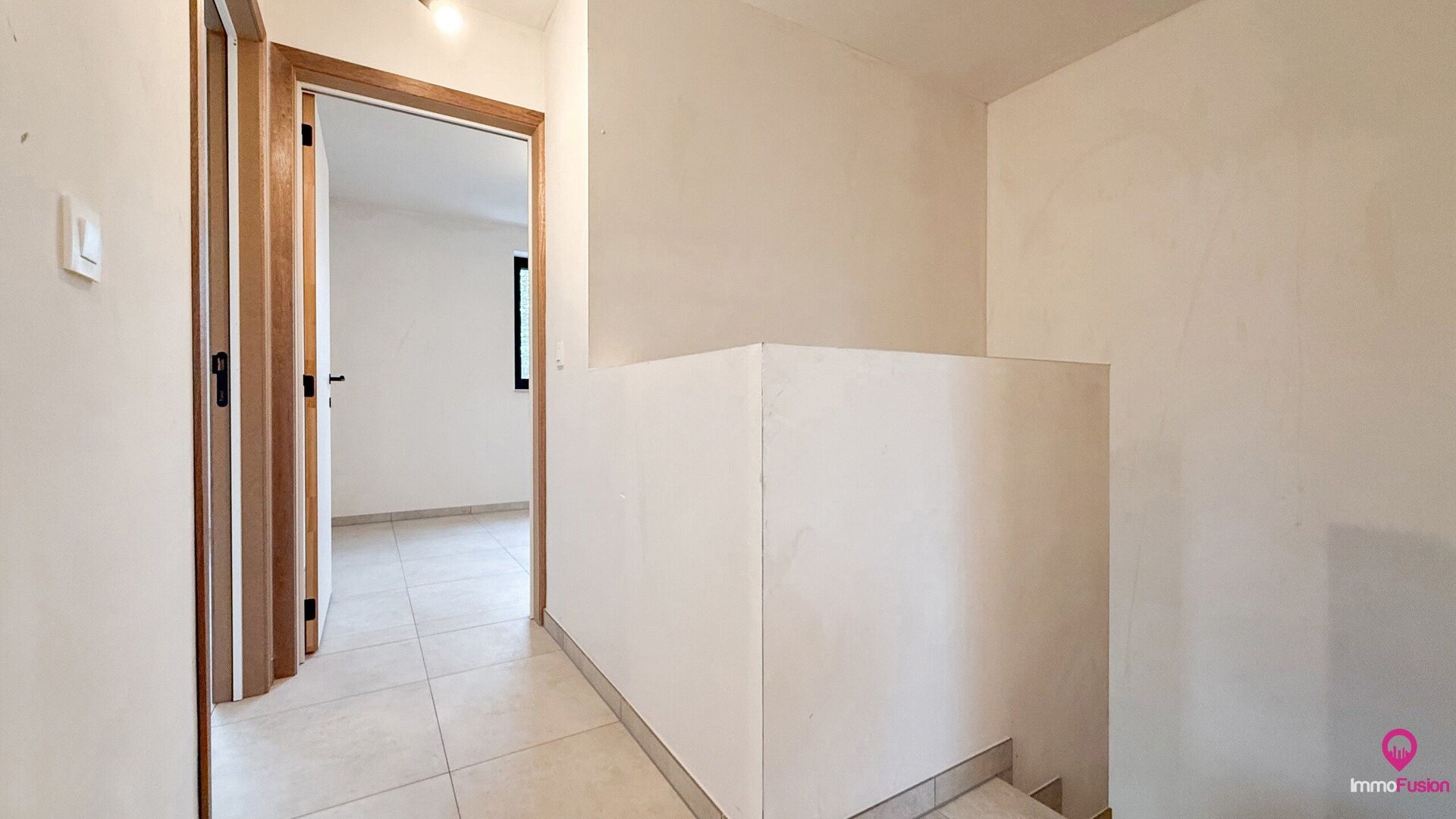 Op de bovenverdieping bevinden zich vier volwaardige slaapkamers, een nachthal, een aparte toiletruimte en een moderne badkamer uitgerust met een dubbele lavabo en een inloopdouche. In totaal beschikt de woning over twee aparte toiletten: één beneden in de inkomhal en één boven.