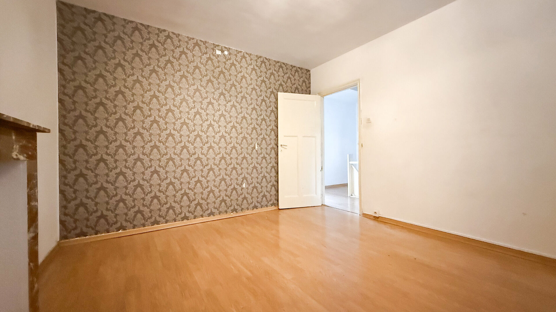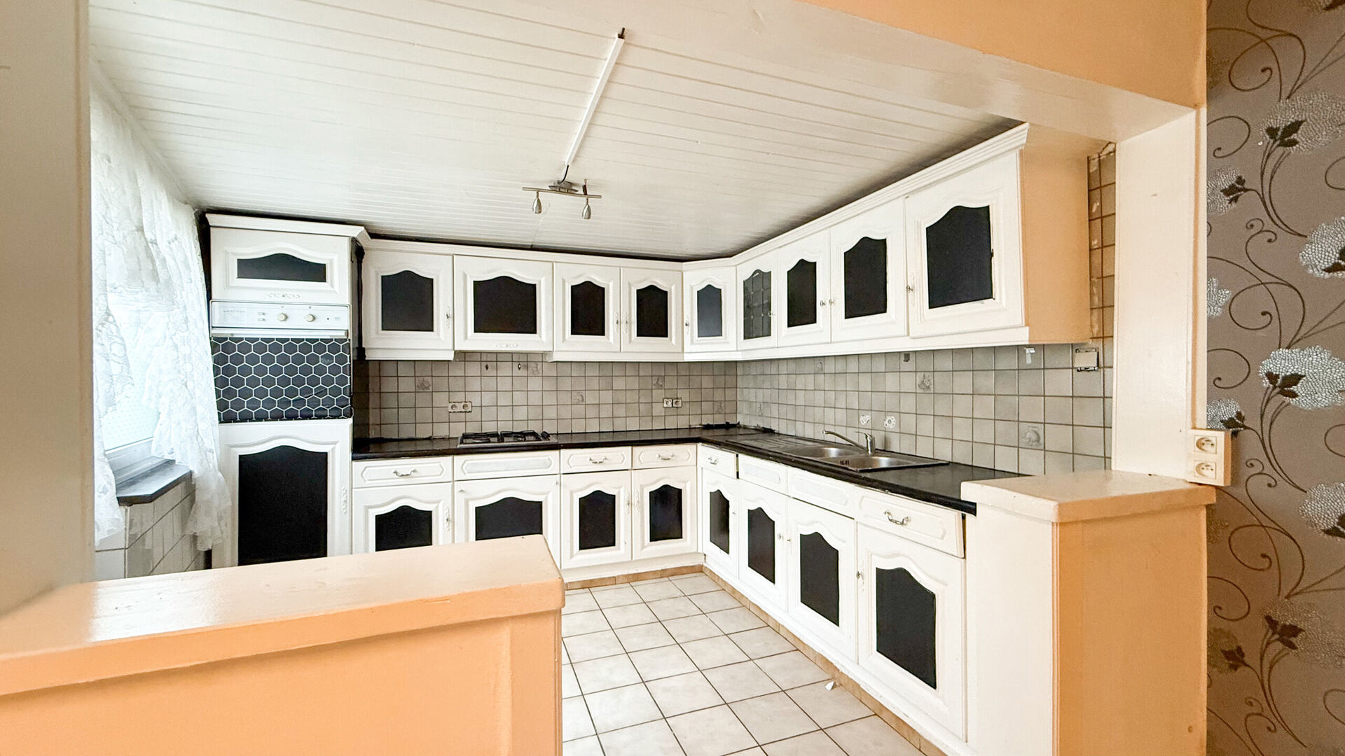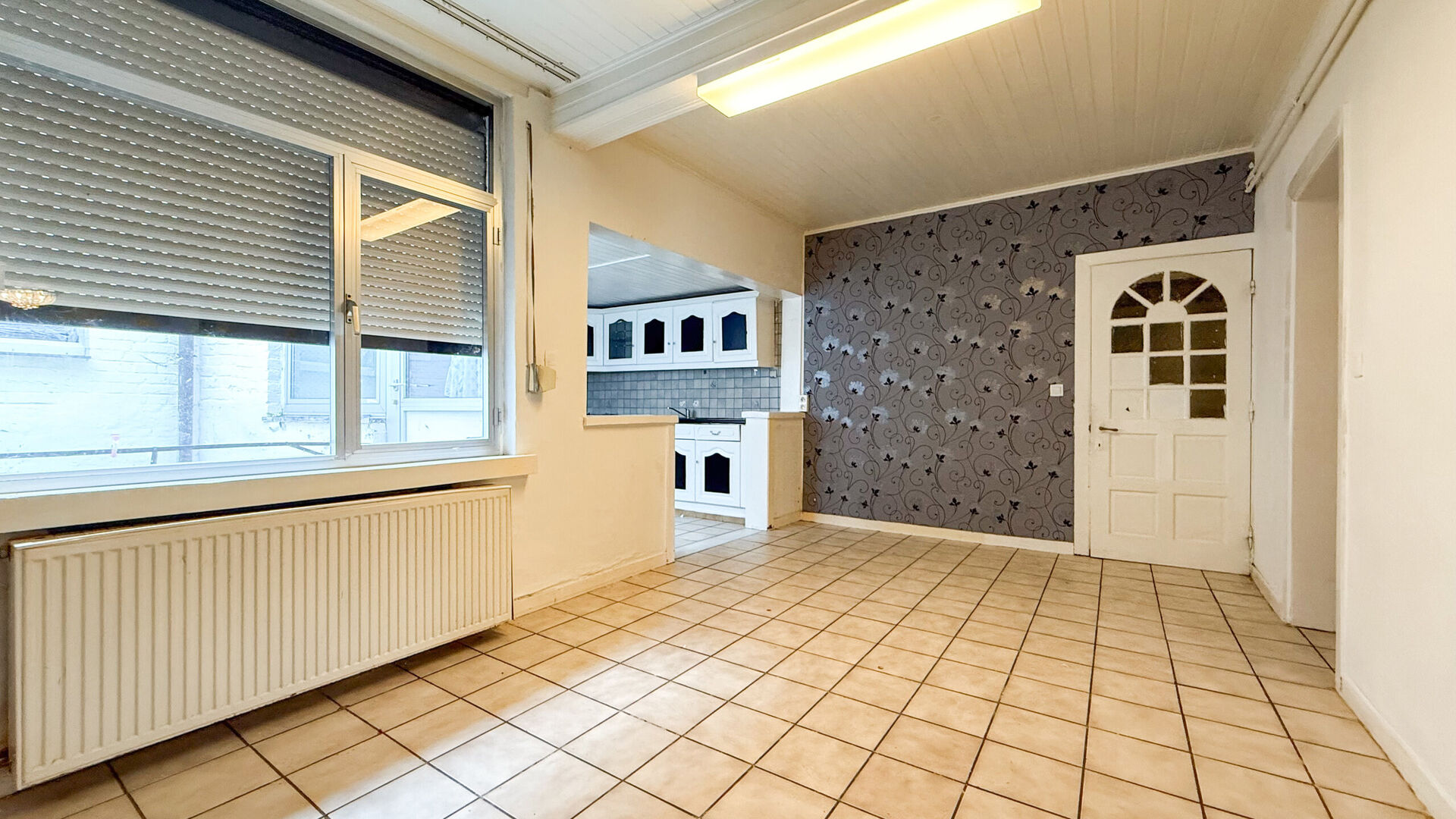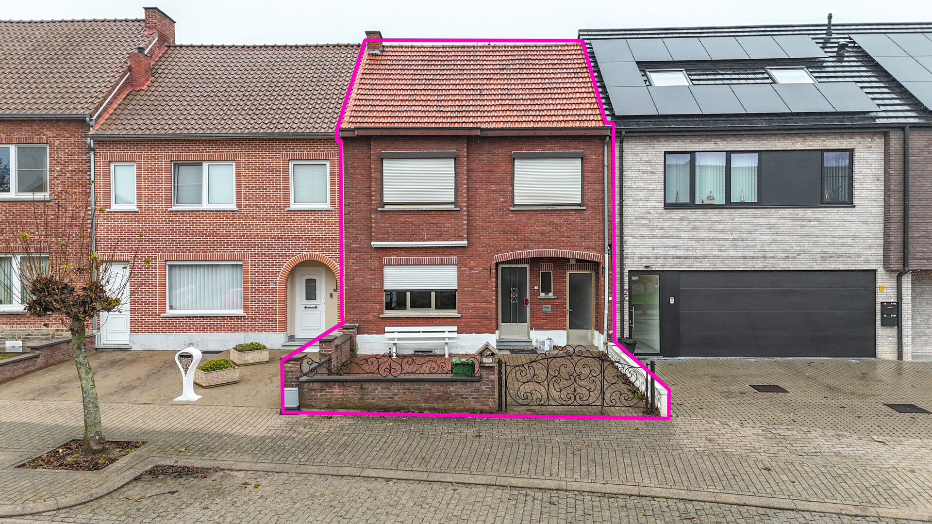 Binnenkomen doe je via de inkomhal, die leidt naar de ruime living en een aparte eetruimte. De keuken is aanwezig, maar dient vernieuwd te worden en biedt zo meteen de kans om deze volledig naar eigen smaak en noden in te richten. Verder is er op het gelijkvloers een eenvoudige badkamer en 1 toilet. De woning beschikt ook over een gedeeltelijke kelder.