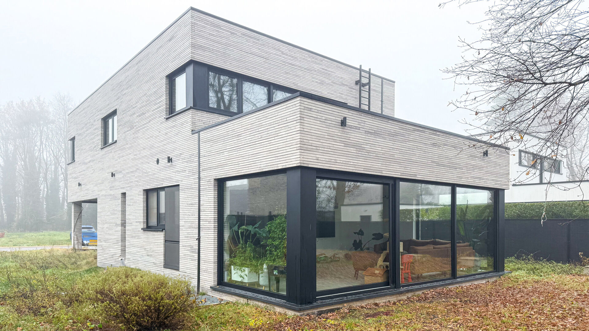 - Drie dubbele beglazing met strak aluminium raamwerk