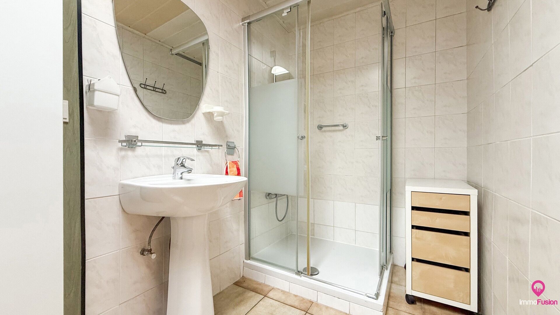 Aansluitend aan de keuken bevindt zich een polyvalente ruimte die verschillende invullingen toelaat, zoals een bureau of hobbyruimte. Vanuit deze ruimte heb je toegang tot de tuin, maar ook tot de badkamer die is uitgerust met een douche, lavabo en toilet. Daarnaast grenst er een handige wasruimte, voorzien van alle aansluitingen.