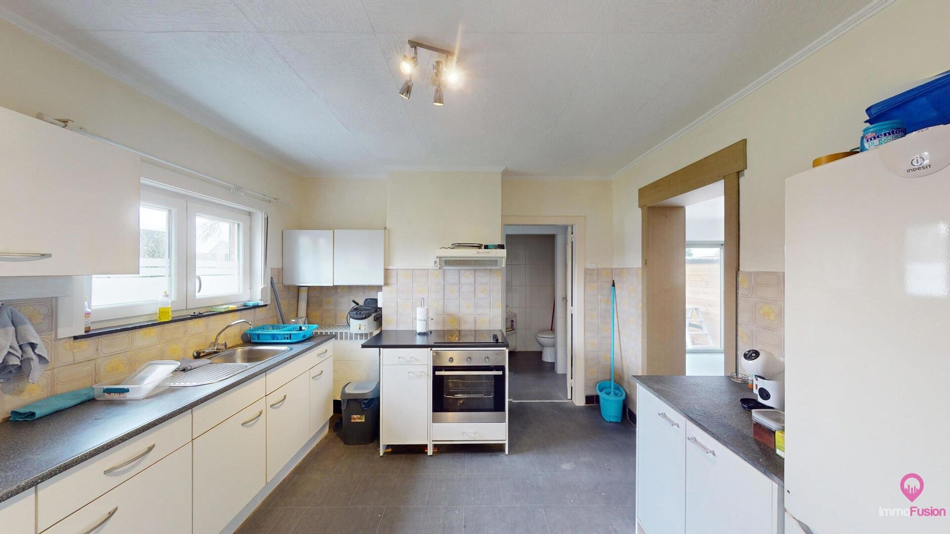 Een ruime keuken is functioneel en geschikt voor dagelijks gebruik. Grenzend aan de keuken vinden we een aparte leefruimte, perfect om te ontspannen met het gezin of om te genieten van gezellige momenten met familie en vrienden. De eetkamer is apart en biedt toegang tot het aangelegde terras.