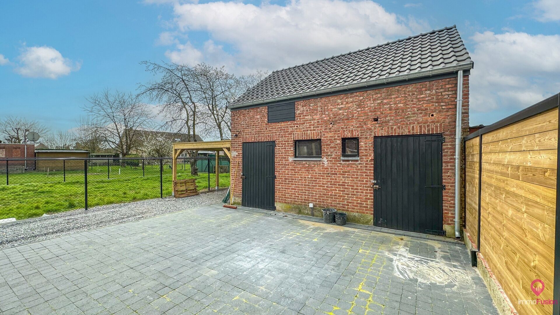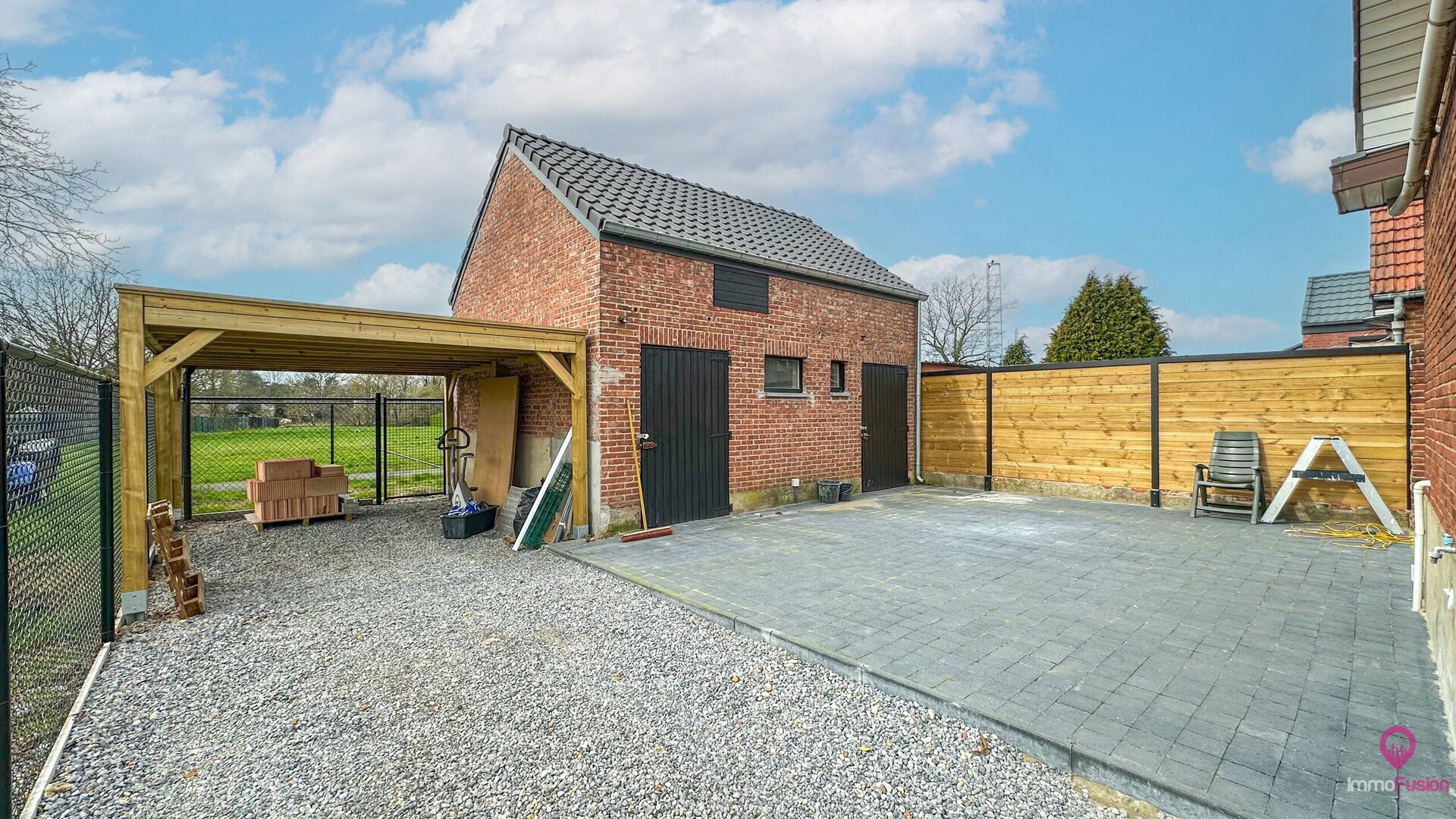 Achteraan de woning, tussen het terras en de groene tuin, bevindt zich een achterbouw met een gloednieuw dak, een ware geruststelling voor de toekomst. Deze ruimte kan dienen als werkplaats of opslag voor fietsen en ander materiaal. Daarnaast prijkt een nieuwe carport, een veilige haven voor uw voertuig(en) en een extra toets van comfort.