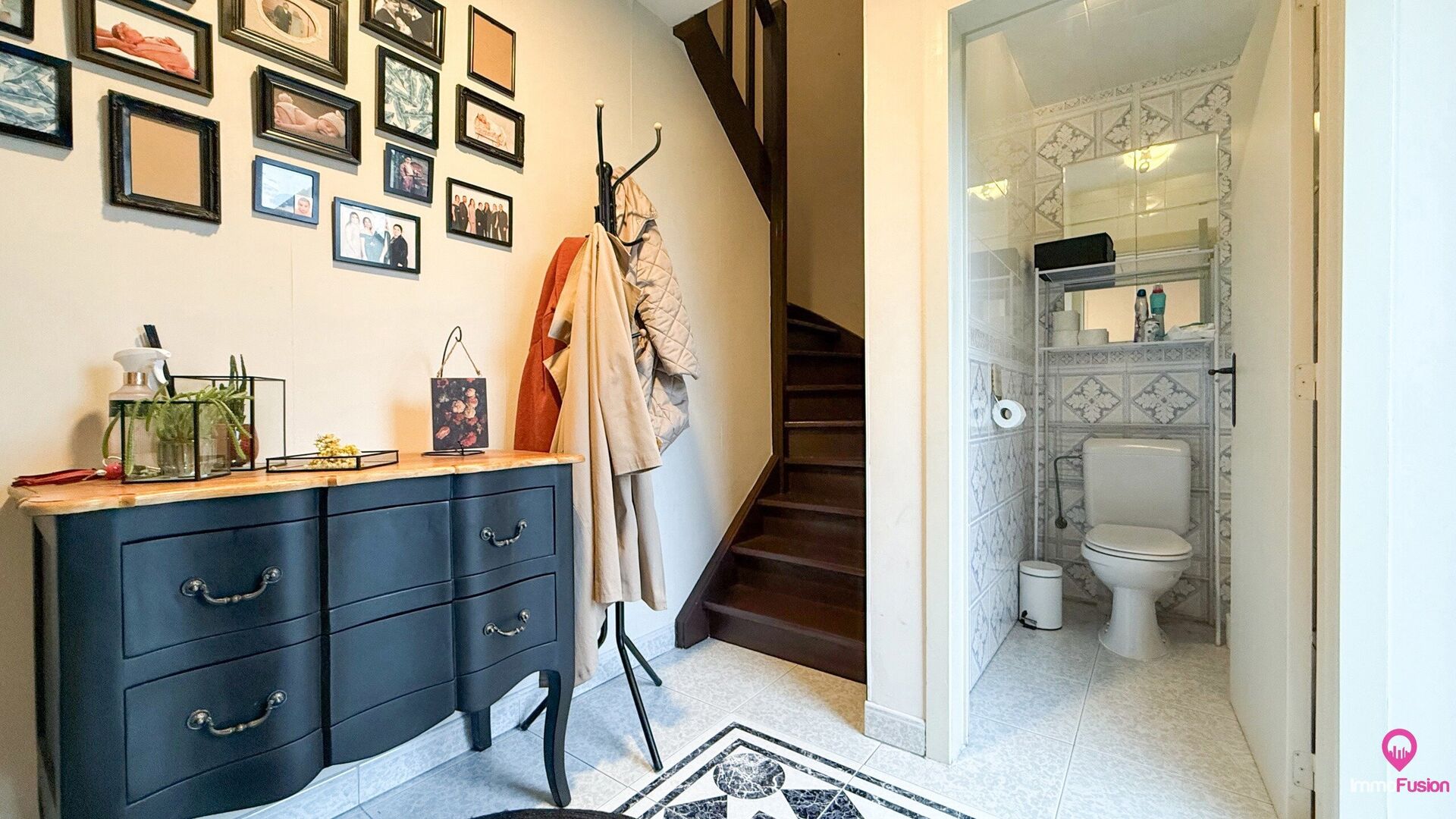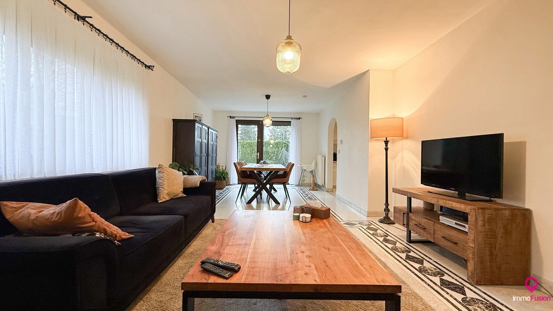 U betreedt de woning via de inkomhal, waar zich meteen het gastentoilet bevindt. Vanuit de gang krijgt u toegang tot de leefruimtes. De gezellige living en eetruimte vormen samen één open en lichtrijk geheel en sluiten mooi aan op de keuken. Deze logische indeling zorgt voor een vlot wooncomfort en een aangename verbinding tussen de verschillende ruimtes.
