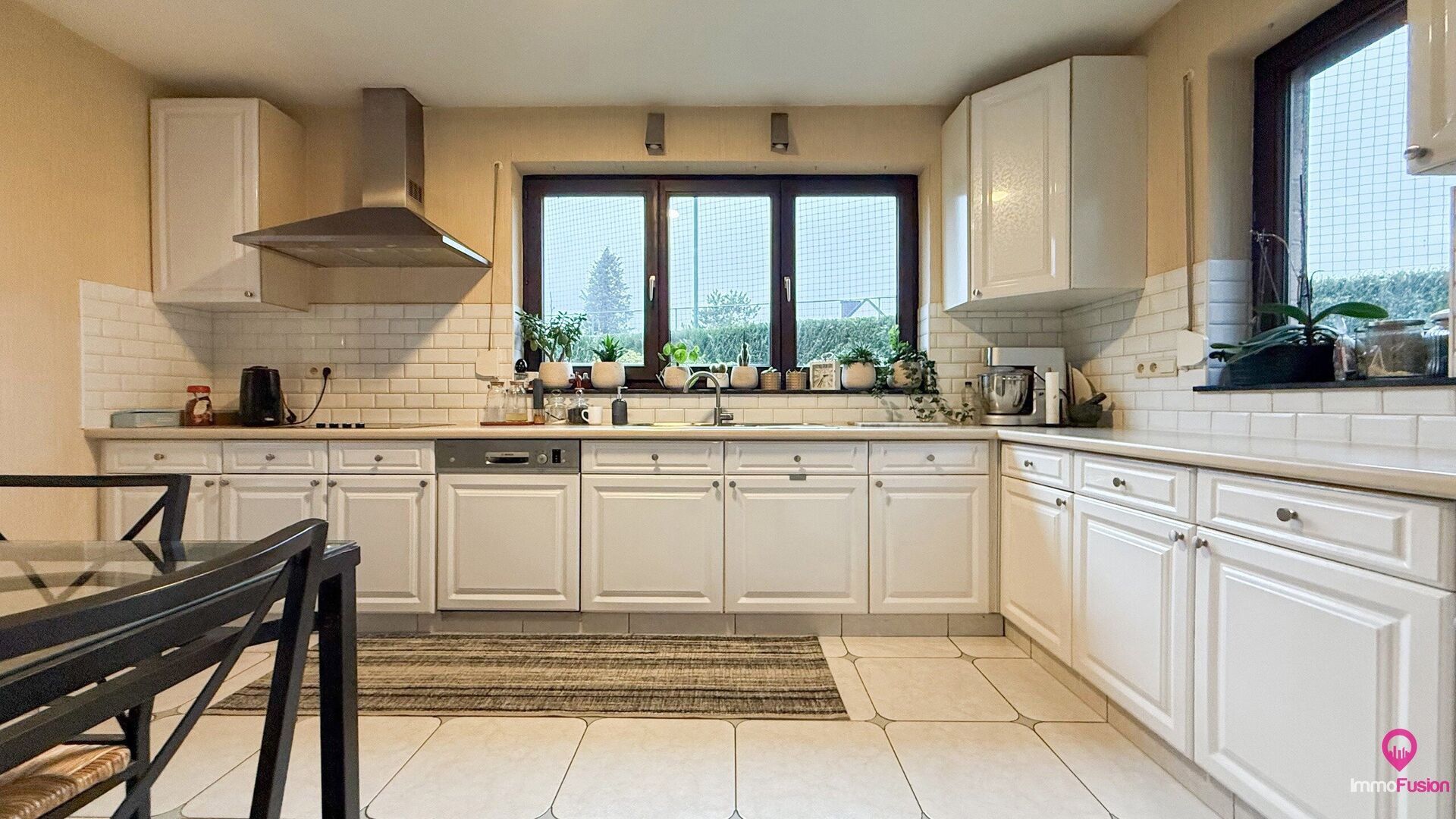 De keuken is volledig ingericht met een inductiekookplaat, spoelbak, ingebouwde vaatwasser en dampkap. Dankzij de vele kasten beschikt u hier over bijzonder veel opbergruimte, wat de keuken uiterst functioneel maakt voor dagelijks gebruik. Achter de keuken bevindt zich een praktische berging die momenteel dienstdoet als wasruimte. Deze ruimte is voorzien van alle nodige aansluitingen, een extra spoelbak en geeft toegang tot de ingebouwde garage.