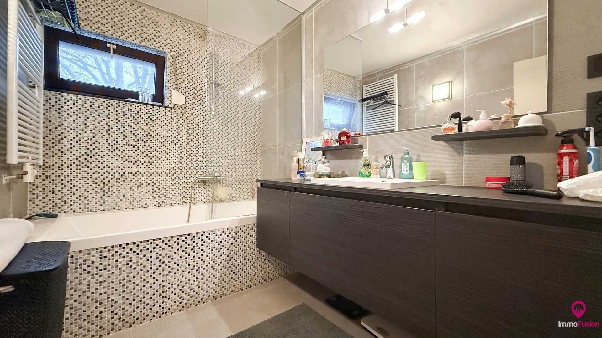 Op de bovenverdieping bevinden zich drie zeer ruime slaapkamers, elk met voldoende plaats voor een volwaardige slaapkamerinrichting. De badkamer is uitgerust met een groot badkamermeubel, een ligbad met douchekop en een handdoekradiator, wat zorgt voor extra comfort.