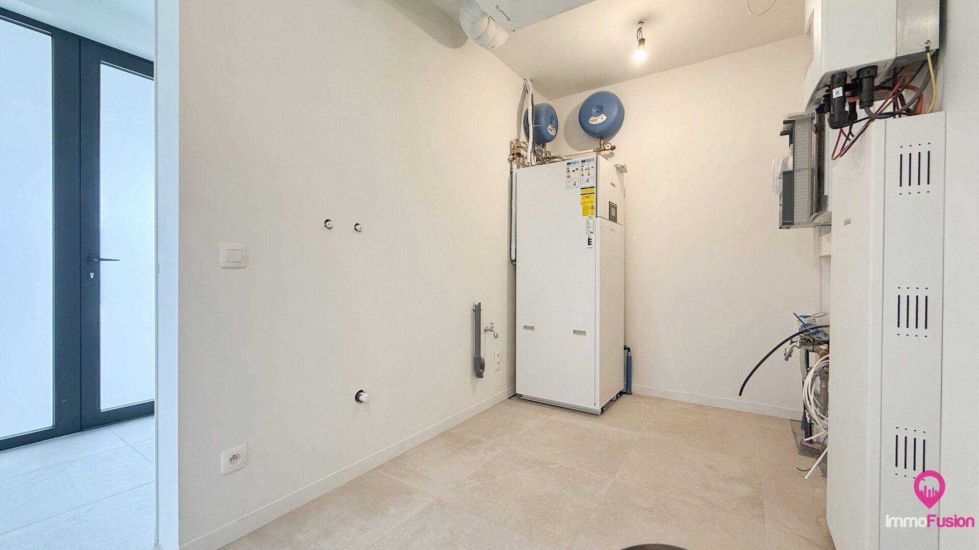 De afwerking is van hoog niveau: binnendeuren met onzichtbare scharnieren, strak afgewerkte aluminium ramen en vloerverwarming op het gelijkvloers zorgen voor een modern en comfortabel interieur.