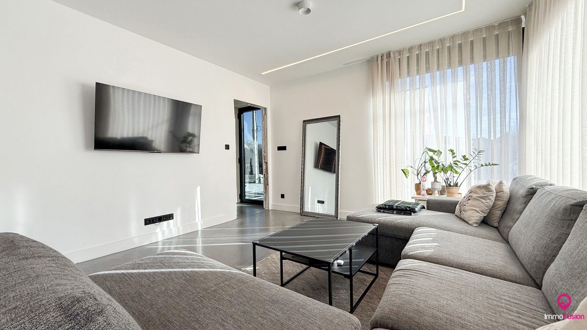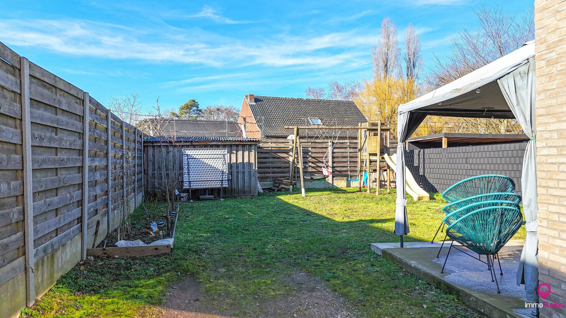 Bij het betreden van de woning komt u terecht in een ruime en lichtrijke woonkamer die naadloos aansluit op de volledig uitgeruste keuken, voorzien van kwalitatieve toestellen en alle hedendaags comfort. Vanuit de leefruimte heeft u directe toegang tot het terras en de onderhoudsvriendelijke tuin, waar u in alle rust kan genieten van het buitenleven. De praktische zij-ingang en oprit naast de woning zorgen voor extra gebruiksgemak.