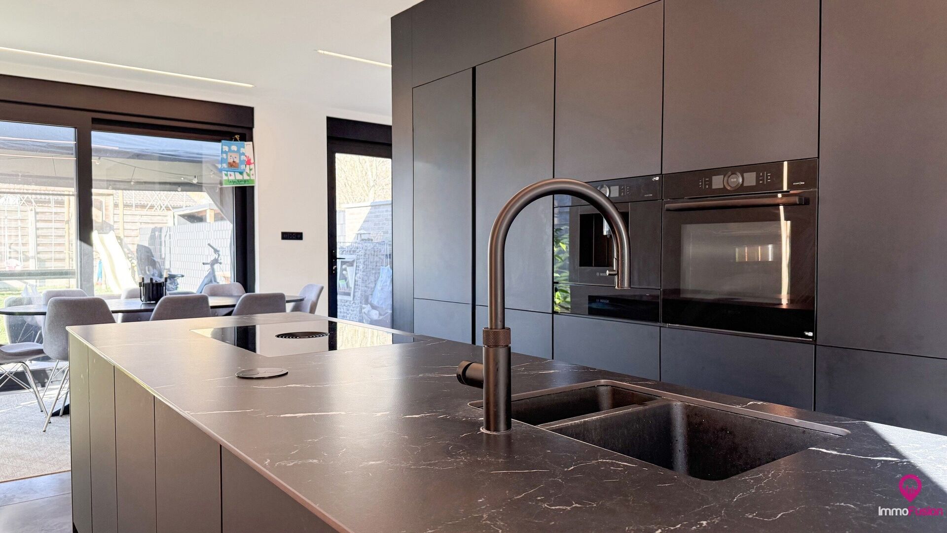 Pluspunten: - Schuifraam + achterdeur naar de tuin - 1ste verdieping voorzien van parketvloer - Superisolerend beglazing in aluminium raamwerk, tot op de vloer voor een strak en modern effect - Domoticasysteem Niko Home ControlVerlichting via domotica - Camerabewaking geïntegreerd - Rolluiken via domotica te bedienen - Volledig uitgeruste keuken - A-merk apparatuur zoals Bosch - Quooker en ingebouwde koffiemachine - Composieten werkblad - Centrale verwarming op aardgas + vloerverwarming - Ventilatiesysteem type D (Vasco) nog uit voeren