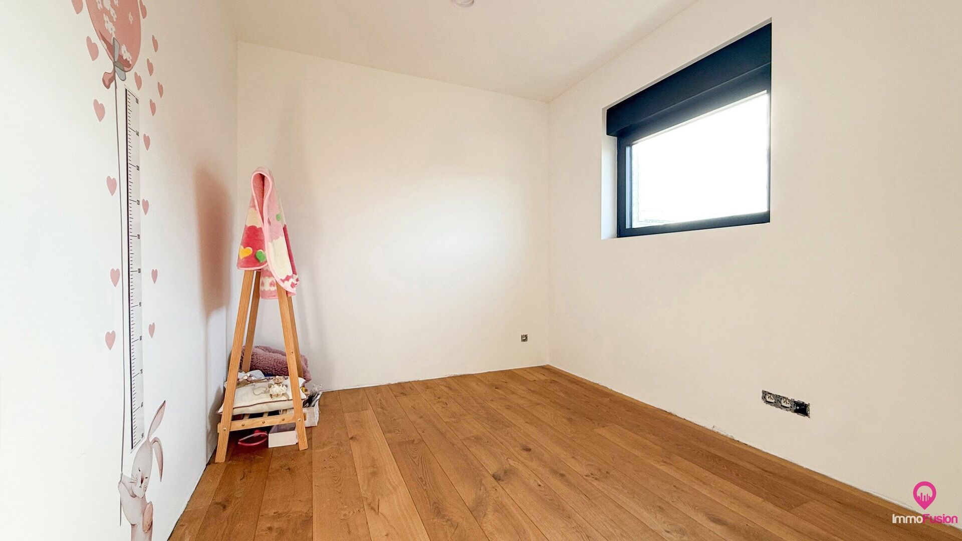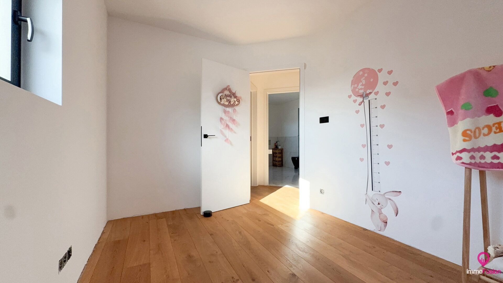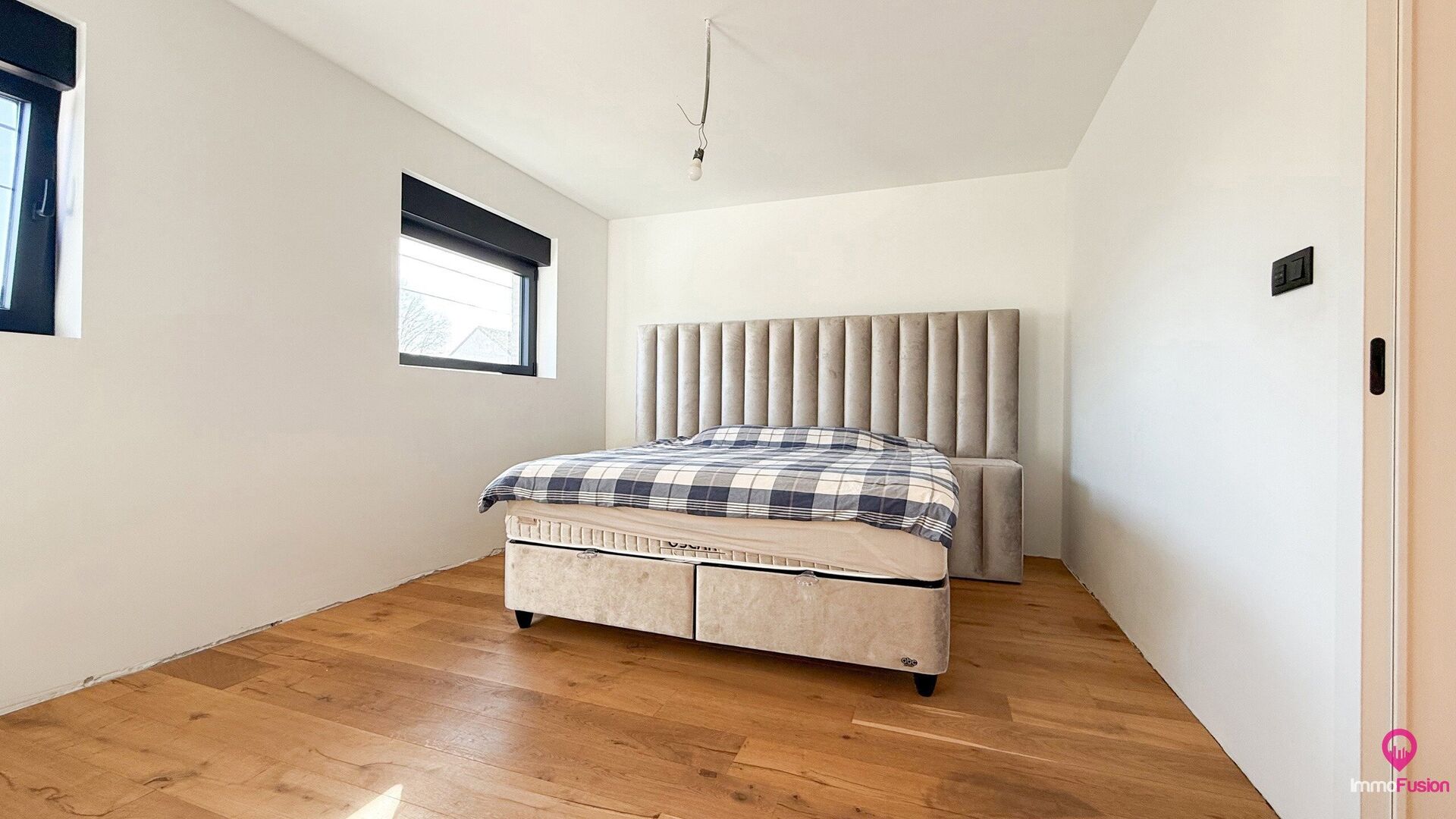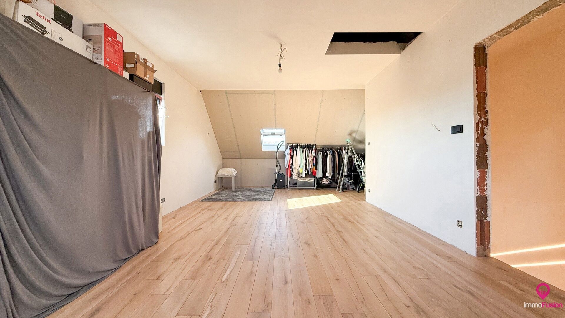 Op de verdieping bevinden zich vier volwaardige slaapkamers, ideaal voor een gezin of voor wie extra ruimte wenst voor bureau of hobbykamer. De badkamer is uitgerust met een inloopdouche, dubbele lavabo en toilet. Daarnaast is er op het gelijkvloers nog een apart gastentoilet en een praktische berging. De zolderruimte biedt bijkomende opslagmogelijkheden.