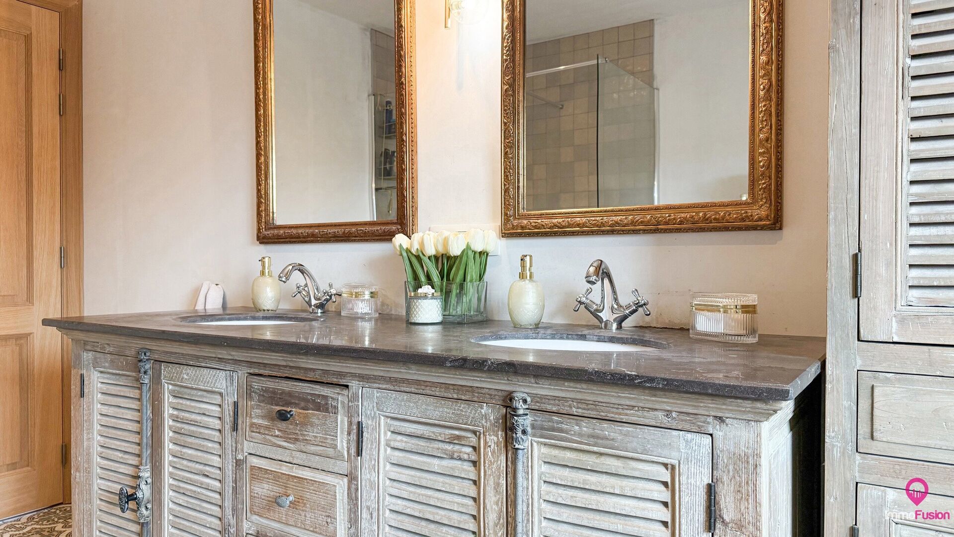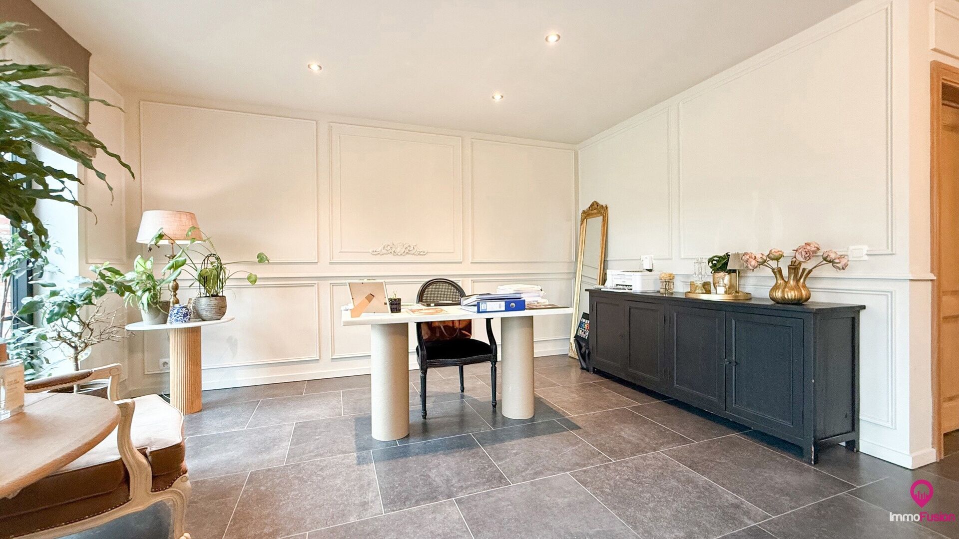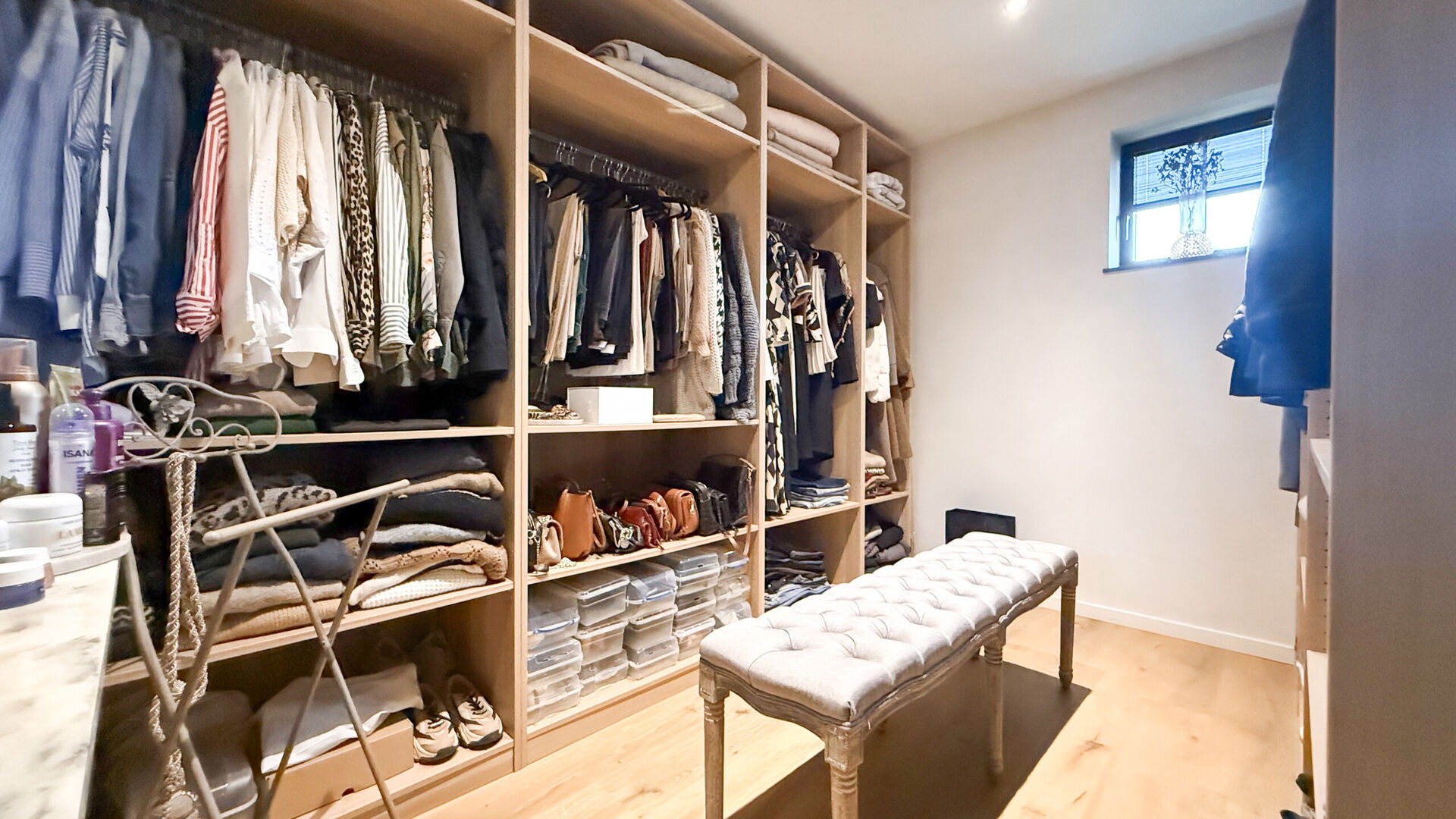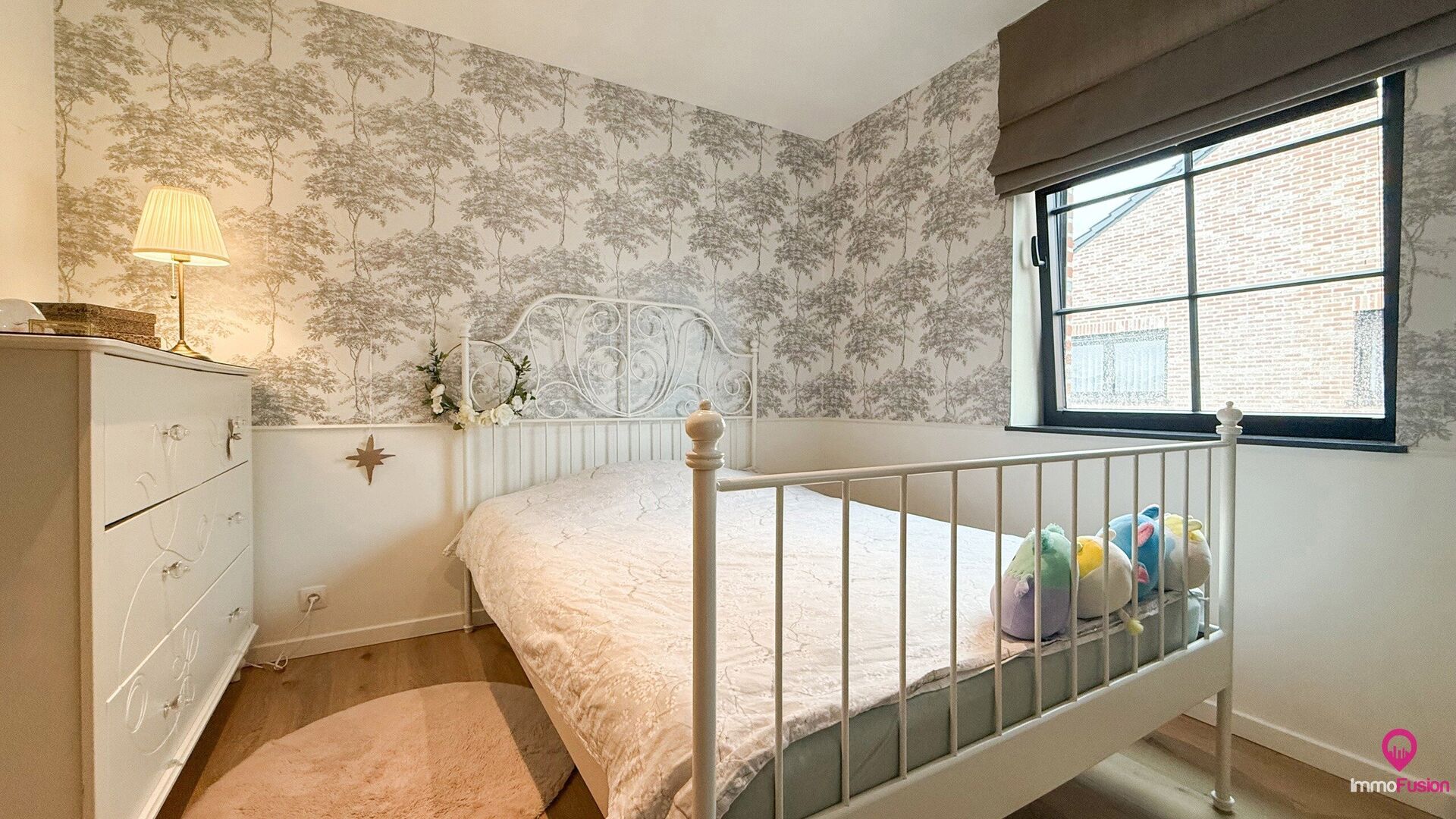 Achteraan de woning bevindt zich de betoverende landelijke keuken, uitgerust met een keukeneiland, gasfornuis, vaatwasser en alle gebruikelijke toestellen. Dankzij de open indeling geniet je hier van een aangename connectie met de leefruimte. Aansluitend is er een open bureauruimte voorzien, ideaal voor thuiswerk of als speelhoek.