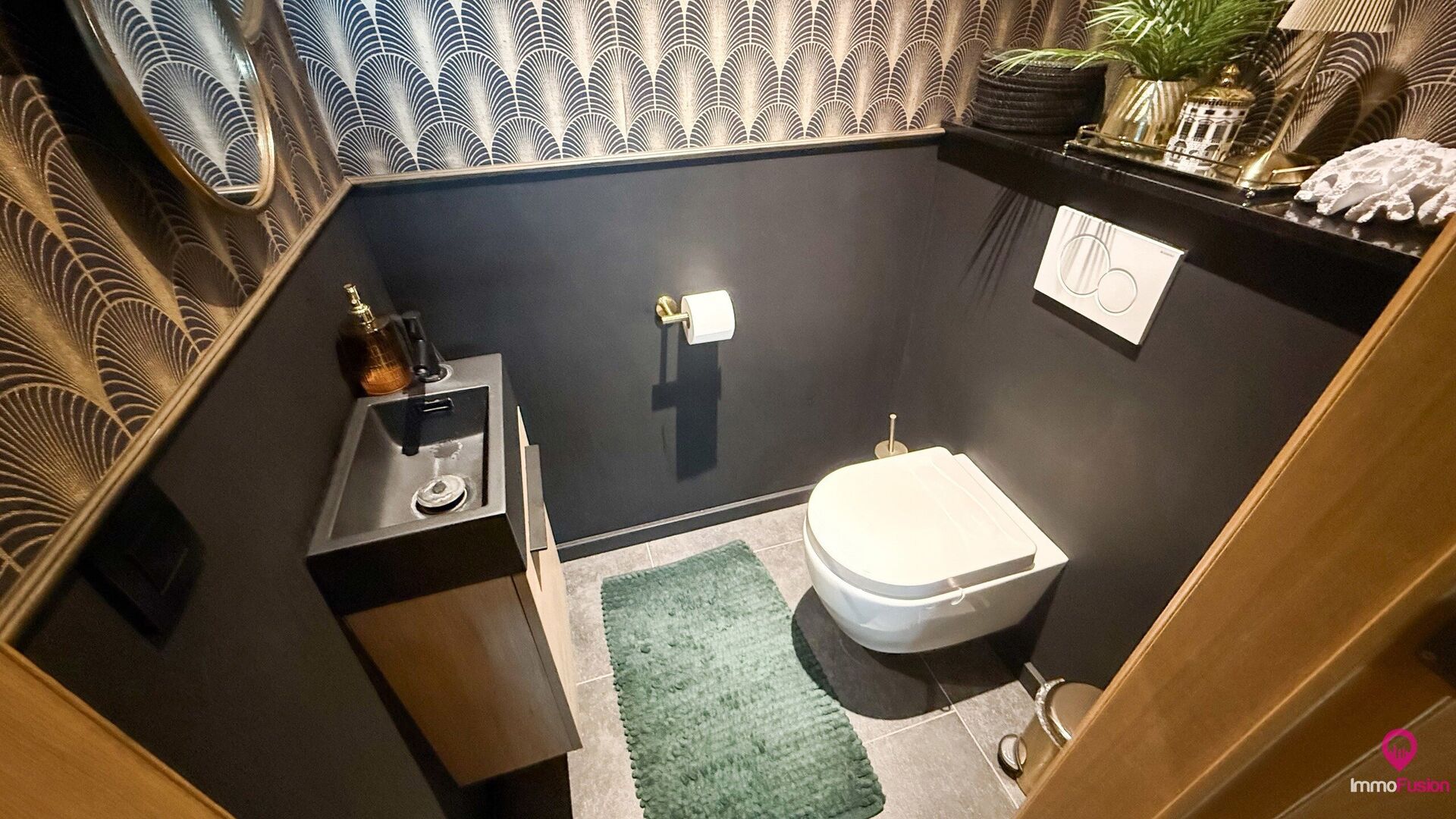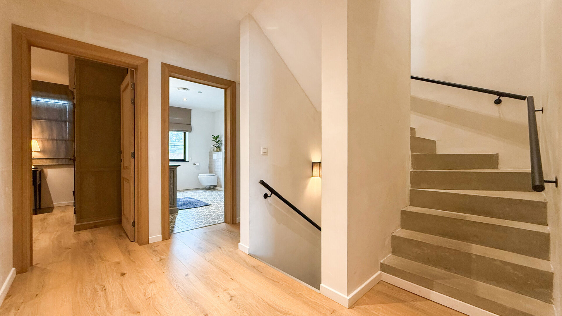 Bij het betreden van de woning kom je terecht in een ruime inkomhal met voldoende plaats voor vestiaire. Hier bevindt zich ook een gastentoilet en de trap naar de bovenverdieping. Vanuit de inkomhal heb je een vlotte doorgang naar de lichtrijke leefruimte, waar oogverblindende woonkamer en eetkamer naadloos in elkaar overlopen.