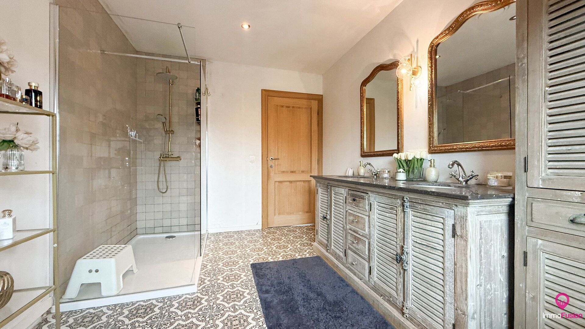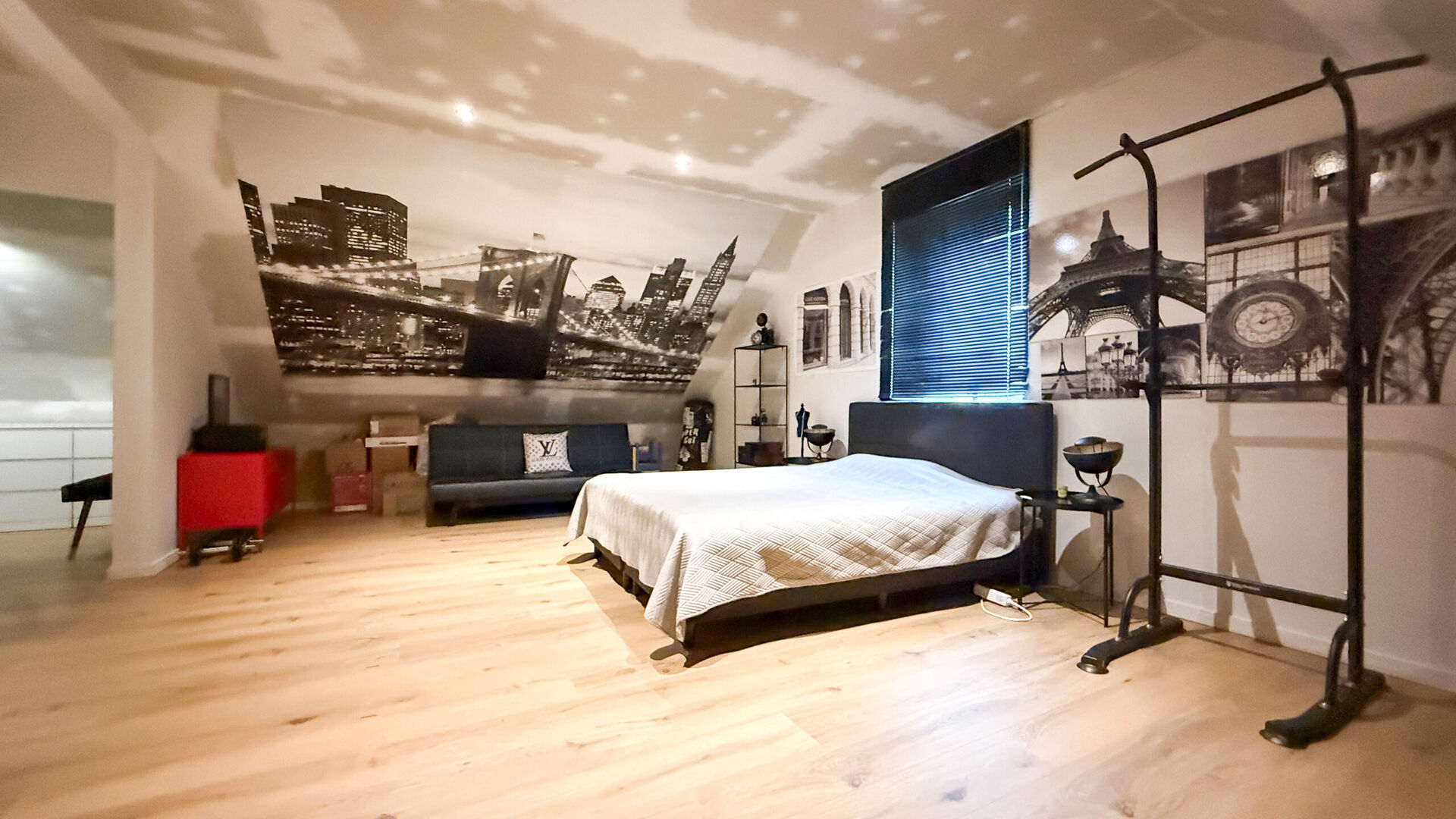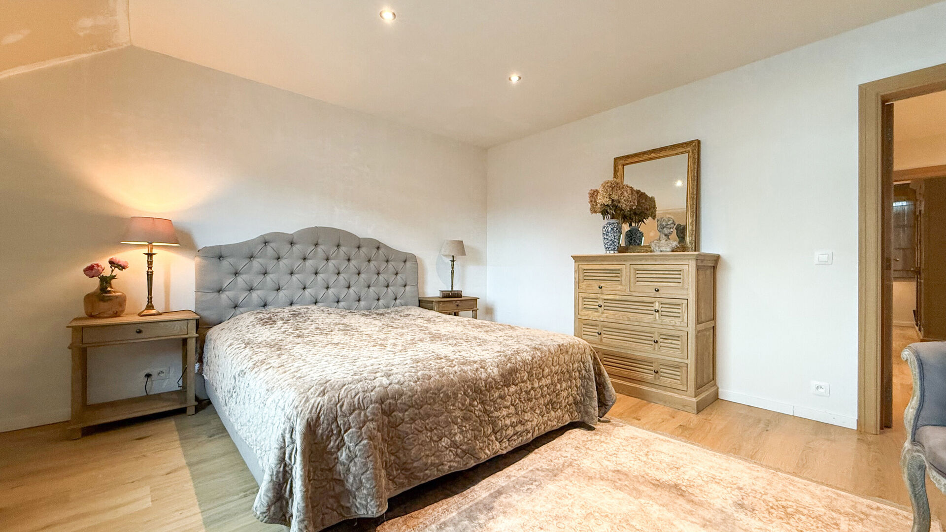 Op de bovenverdieping bevinden zich drie imposante slaapkamers, waarvan één met dressing. De betoverende badkamer is centraal gelegen en praktisch ingericht. Via een vaste trap bereik je de zolderverdieping, waar momenteel een vierde slaapkamer is ingericht – ideaal als extra slaapruimte, hobbykamer of bureau.