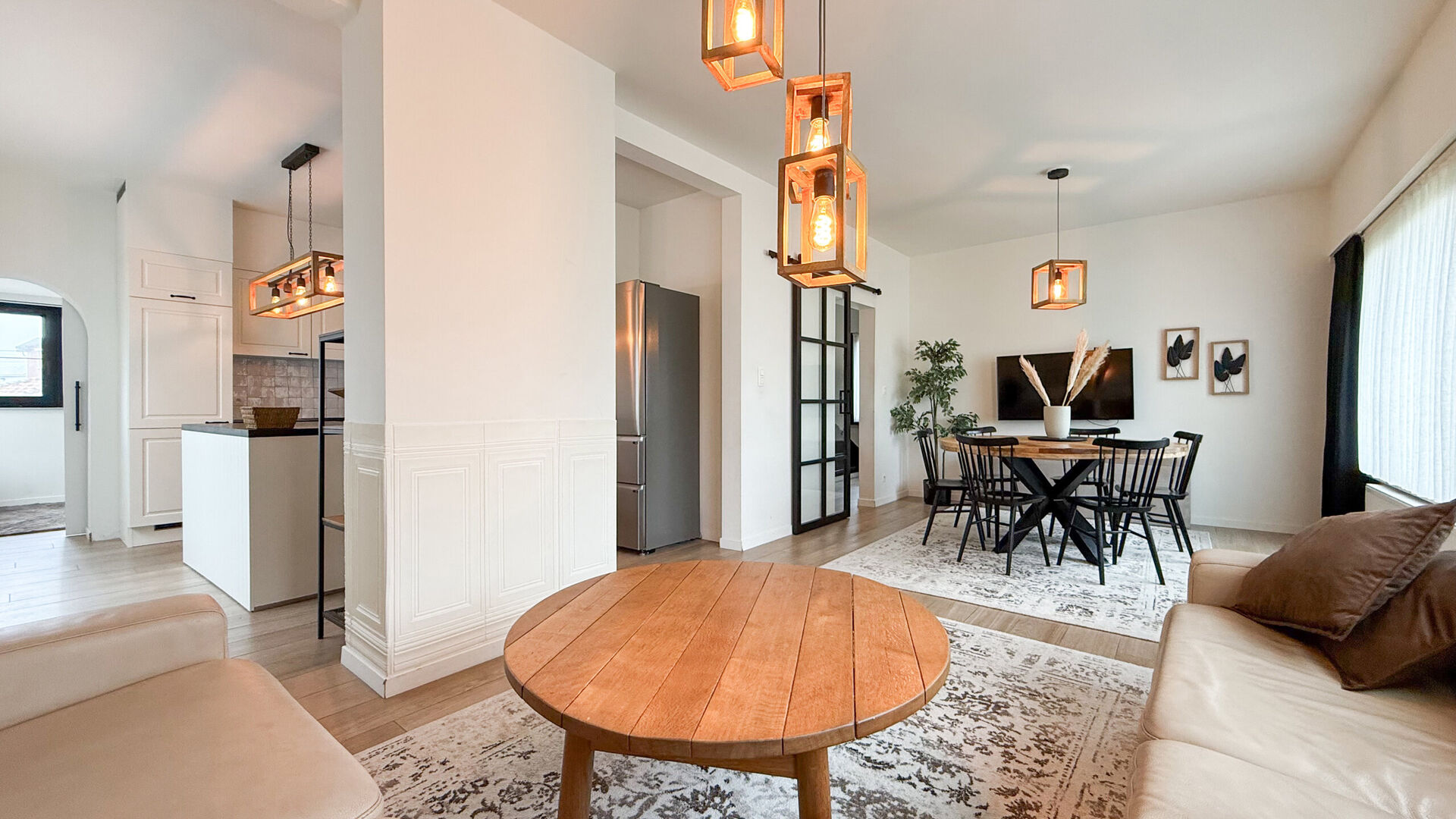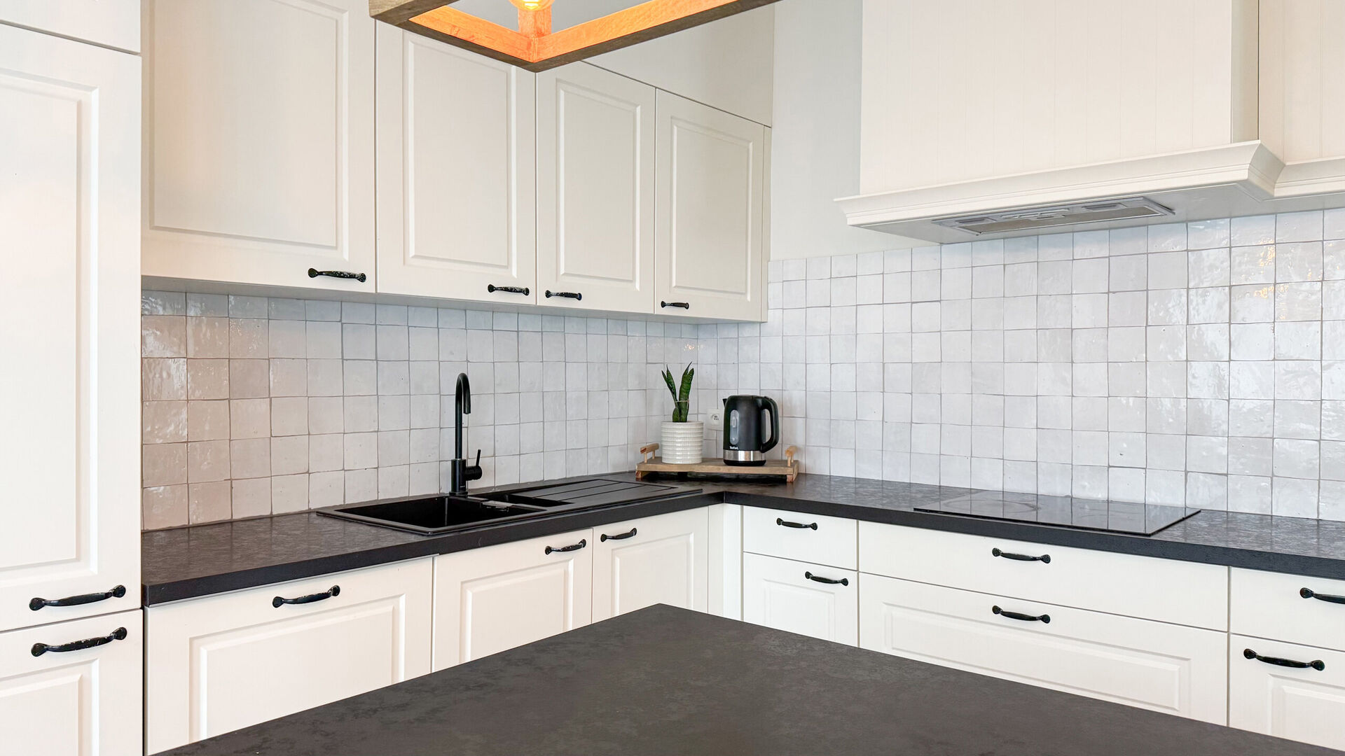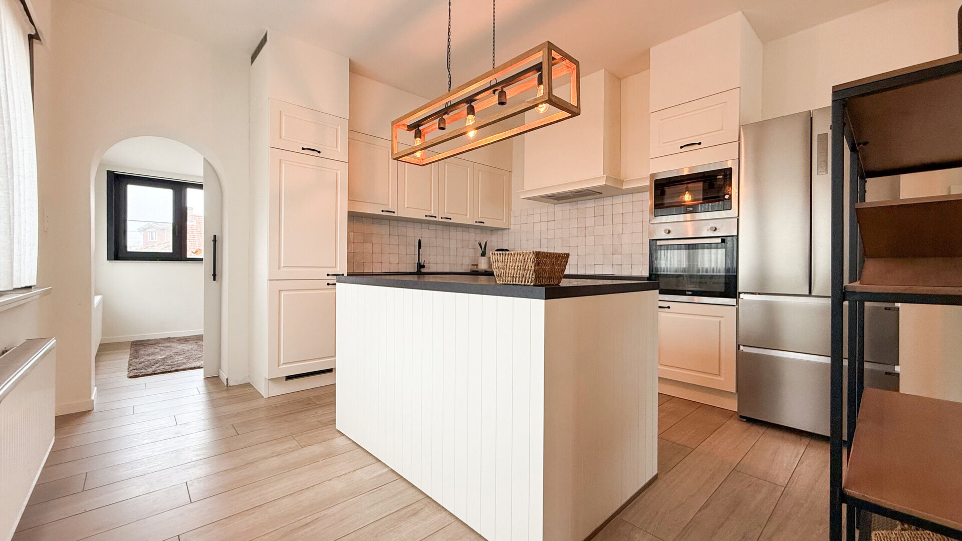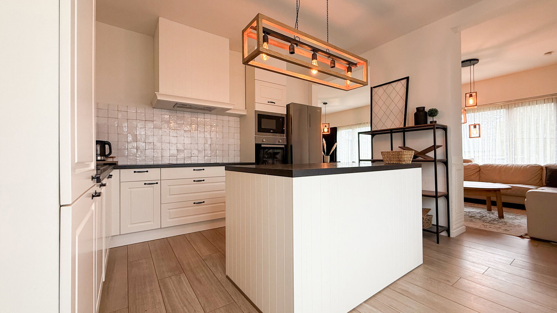De volledig uitgeruste keuken met kookeiland sluit perfect aan bij de leefruimte en biedt alle comfort voor wie graag kookt en geniet van gezellige momenten met familie of vrienden. Dankzij de directe connectie met de leefruimte blijft u steeds in contact met uw gasten.