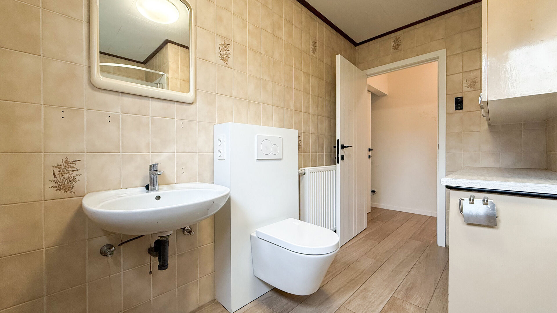 Achteraan de woning bevindt zich een bijzonder veelzijdige ruimte met een tweede ruime leefruimte, ideaal als extra zithoek, speelkamer of ontspanningsruimte. Aansluitend vindt u hier ook de badkamer, uitgerust met een douche en toilet en in verzorgde staat.