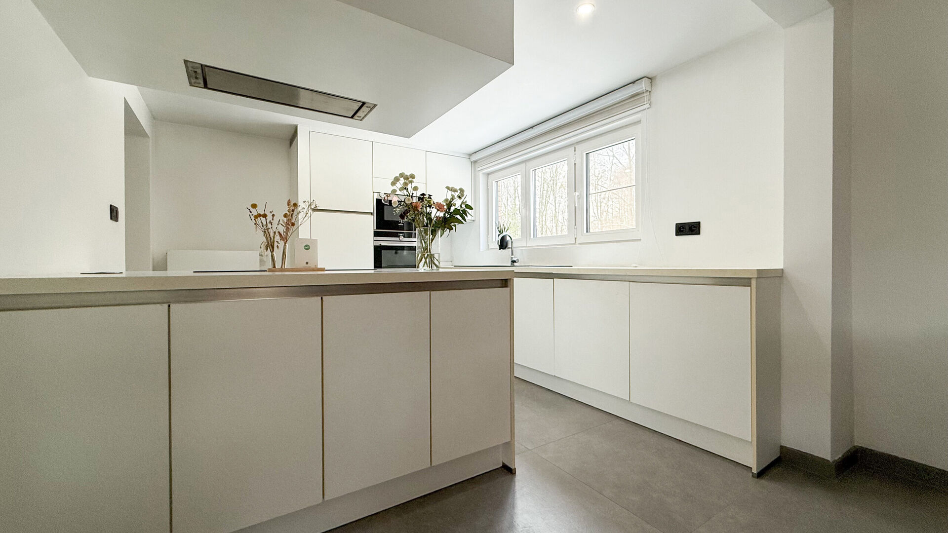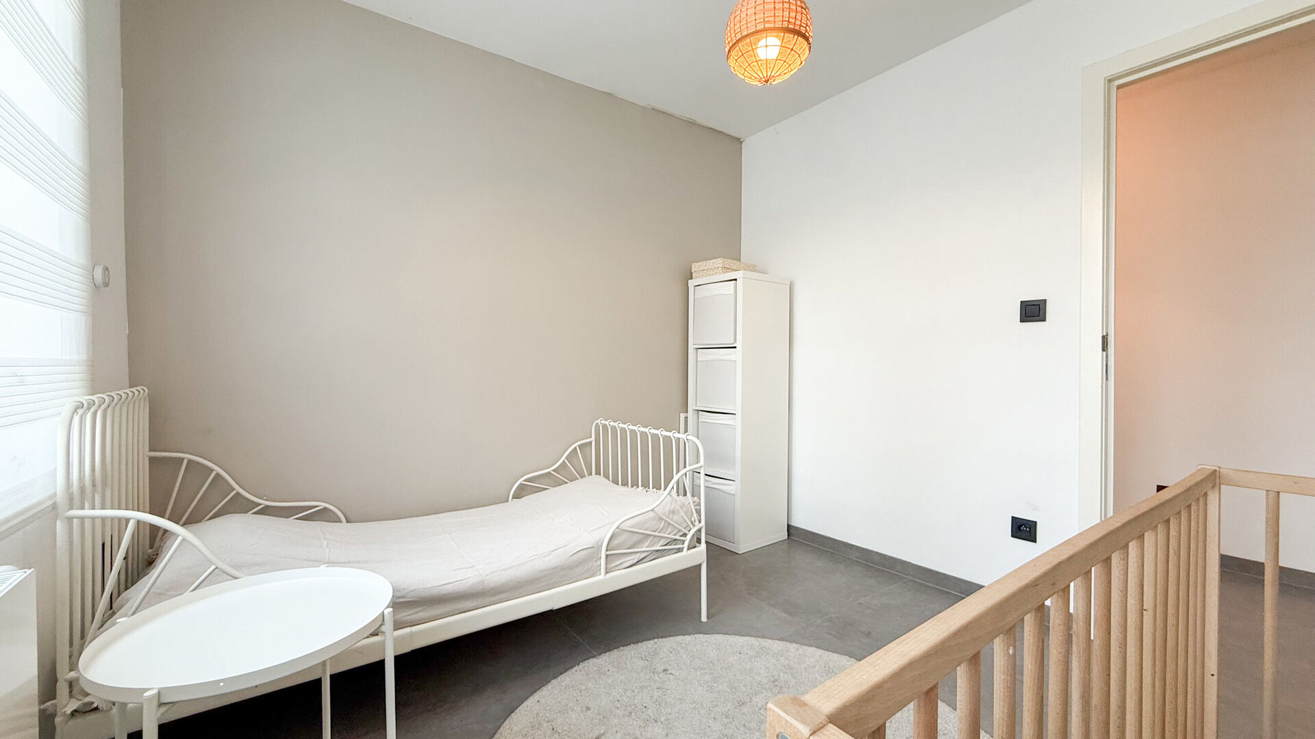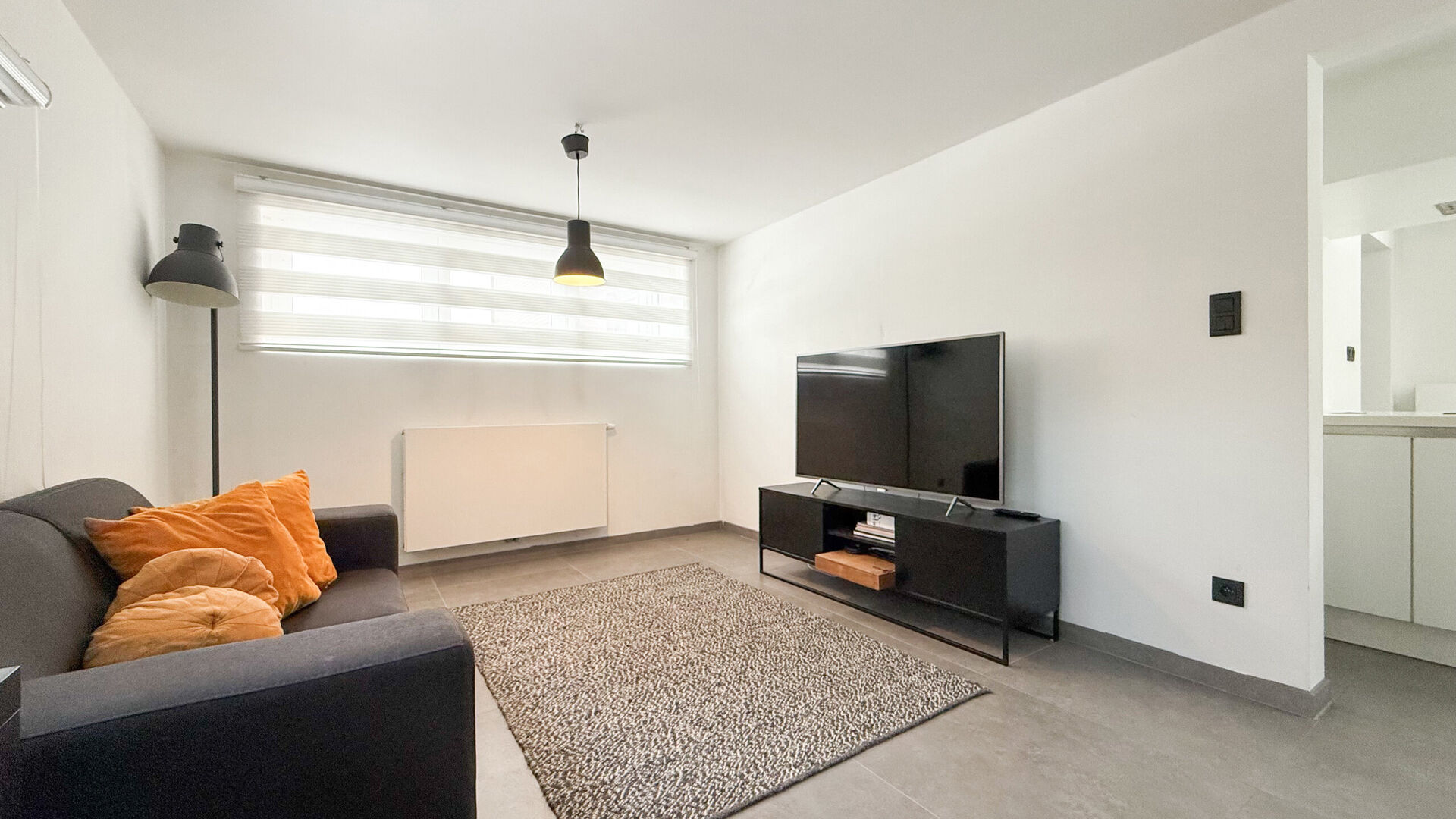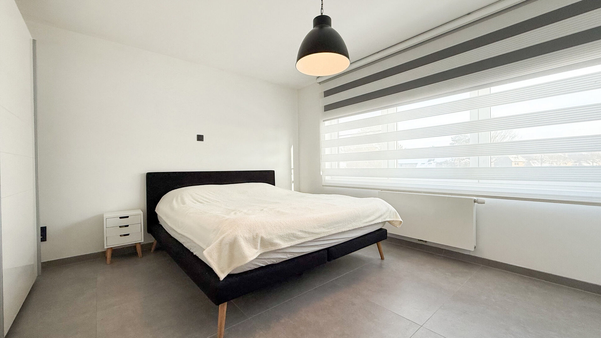 De woning beschikt over twee slaapkamers en een ruime, open keuken die naadloos aansluit op de leefruimte, wat zorgt voor een modern en lichtrijk geheel. Dankzij de grote raampartijen geniet u van een overvloed aan natuurlijk licht doorheen de volledige woning.
