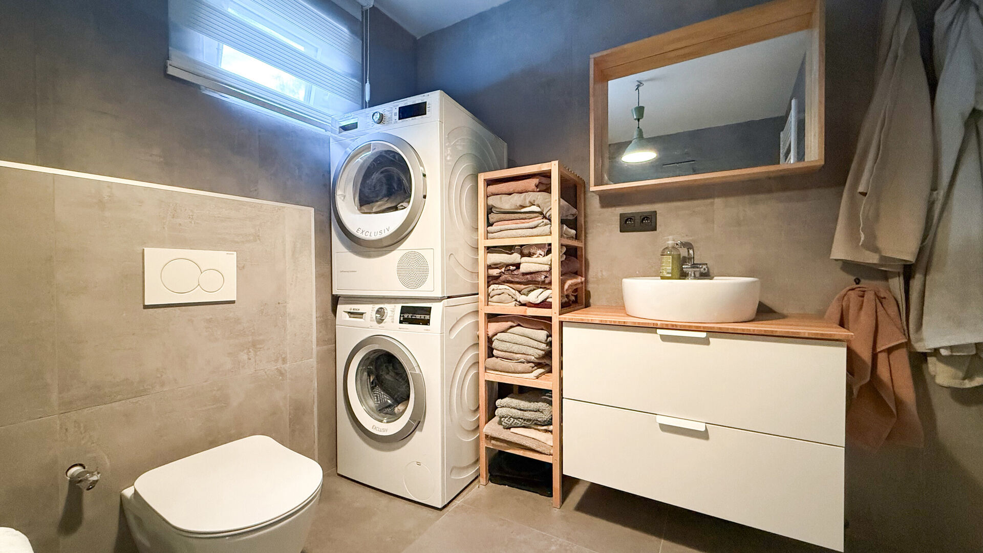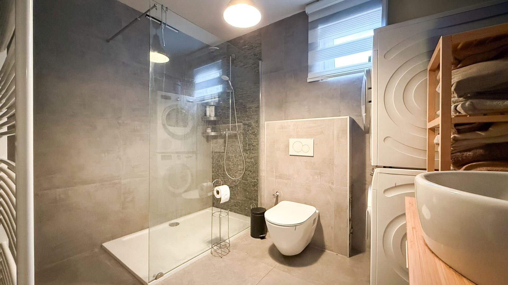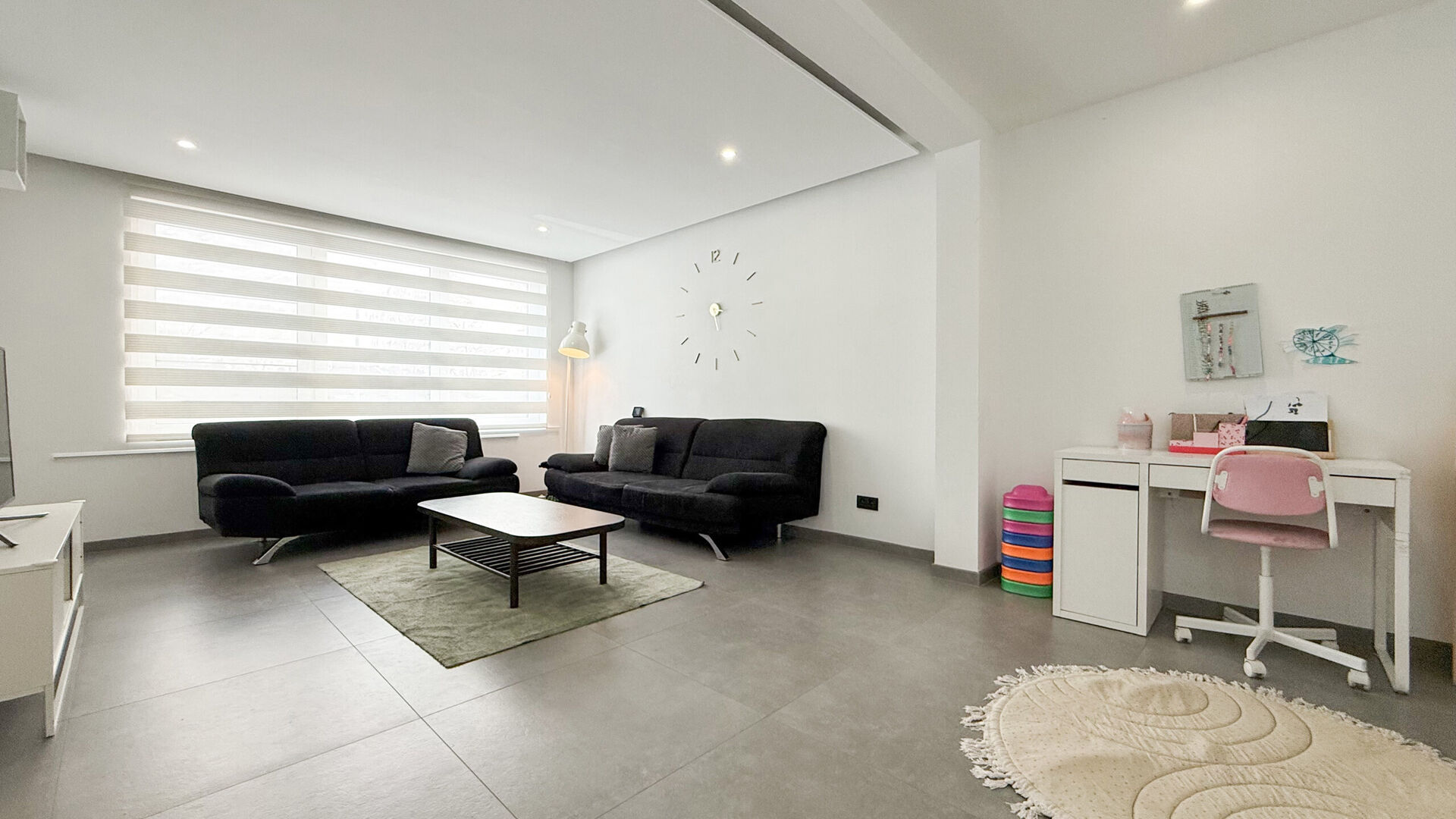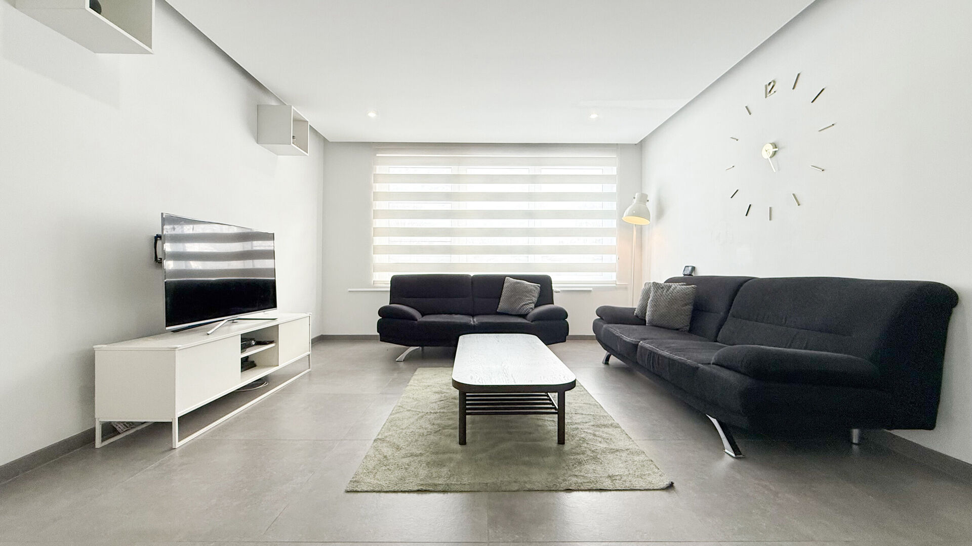De woning beschikt over twee slaapkamers en een ruime, open keuken die naadloos aansluit op de leefruimte, wat zorgt voor een modern en lichtrijk geheel. Dankzij de grote raampartijen geniet u van een overvloed aan natuurlijk licht doorheen de volledige woning.