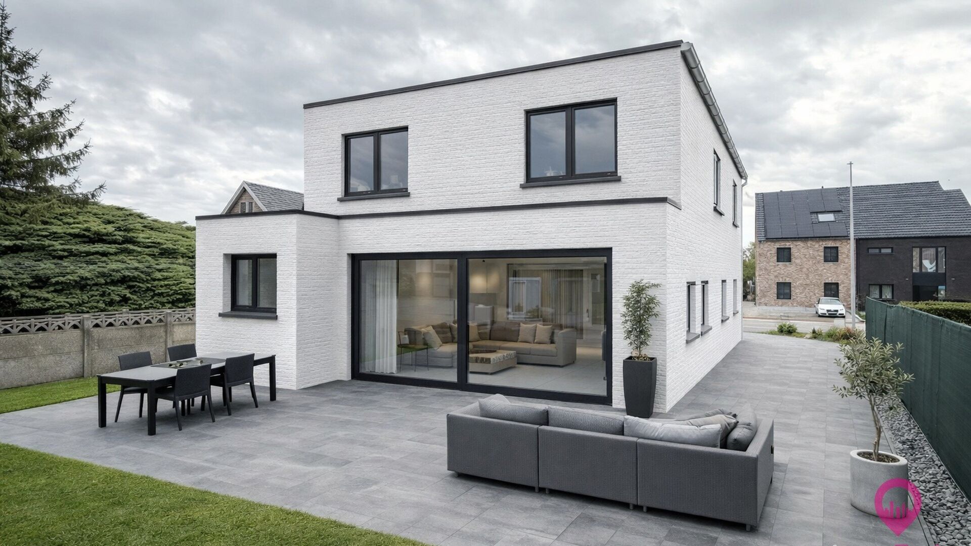 De ligging is een absolute troef: rustig en toch centraal, met een vlotte verbinding naar winkels, scholen, restaurants, snelwegen en mooie wandel- en fietsroutes.